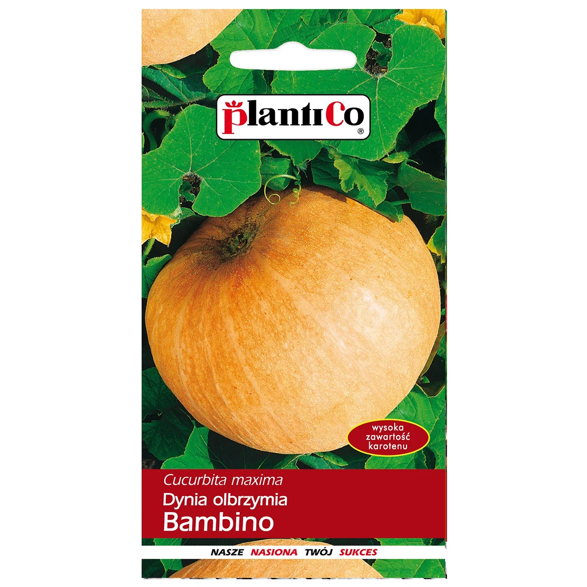 Dynia Olbrzymia Bambino to średnio wczesna, bardzo plenna odmiana płożąca o długich rozgałęzieniach. Owoce są kuliste, nieco spłaszczone. Odcień delikatnej skórki jest pomarańczowy do ciemnopomarańczowego. Skórka pokryta jest delikatną siateczką. Odmiana o ścisłym, soczystym, ciemnopomarańczowym miąższu. Posiada dużą zawartość karotemu, witaminy C i cukrów.