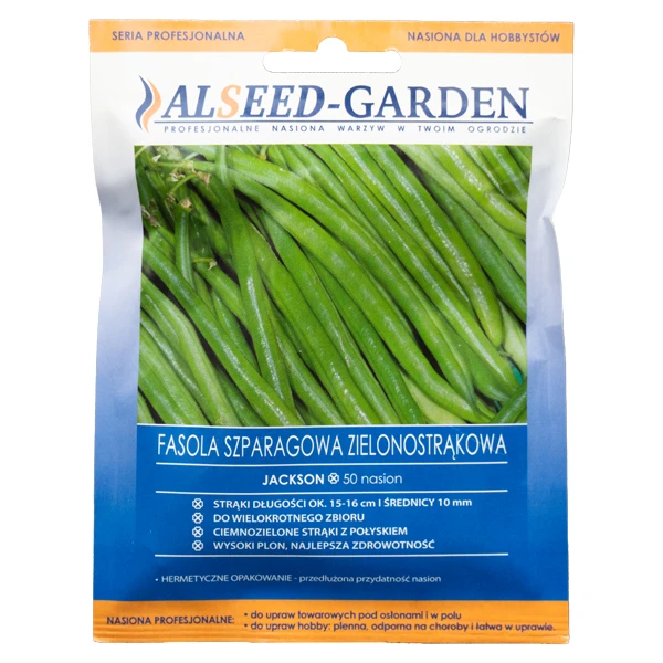 Odmiana fasoli szparagowej karłowej Jackson stanowi rozwinięcie poprzedniej odmiany Lawrence. Charakteryzuje się silnym wzrostem i pionowym pokrojem, wytwarzając strąki o długości w granicach 15–16 cm i średnicy około 10 mm. Strąki wyróżniają się ciemnozielonym błyszczącym kolorem, co jest efektem ich gładkiej skóry i woskowanego pokrycia. Dzięki tym cechom, strąki są naturalnie chronione przed chorobami i utratą wilgoci, co przekłada się na ich długotrwałą świeżość. Jest to odmiana o wysokiej produktywności i odporności na choroby.