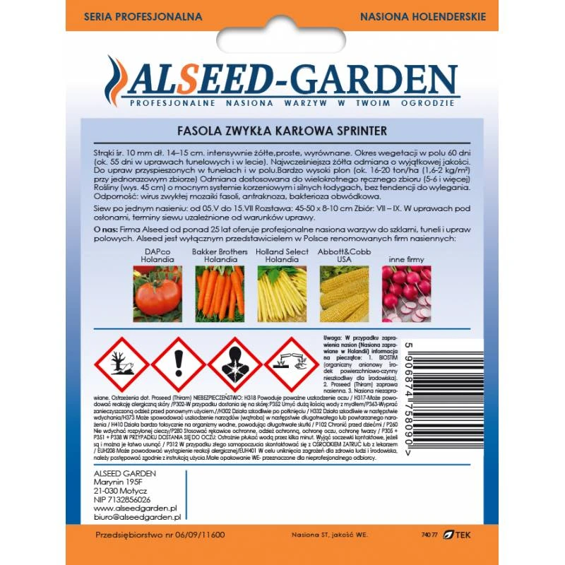 Fasola Sprinter, to najwcześniejsza żółta odmiana o wyjątkowej jakości. Fasola polecana jest do upraw przyspieszonych w tunelach, jak również w polu. Charakteryzuje się bardzo wysokim plonem (ok. 16-20 ton/ha (1,6-2 kg/m2) przy jednorazowym zbiorze). Odmiana dostosowana do wielokrotnego ręcznego zbioru (5-6 i więcej). Rośliny (wys. 45 cm) o mocnym systemie korzeniowym i silnych łodygach, intensywnie żółte, proste oraz wyrównane. Fasola Spinter jest odporna na wirus zwykłej mozaiki fasoli, antraknoza, bakterioza obwódkowa. Okres wegetacji w polu to 60 dni (ok. 55 dni w uprawach tunelowych i w lecie).