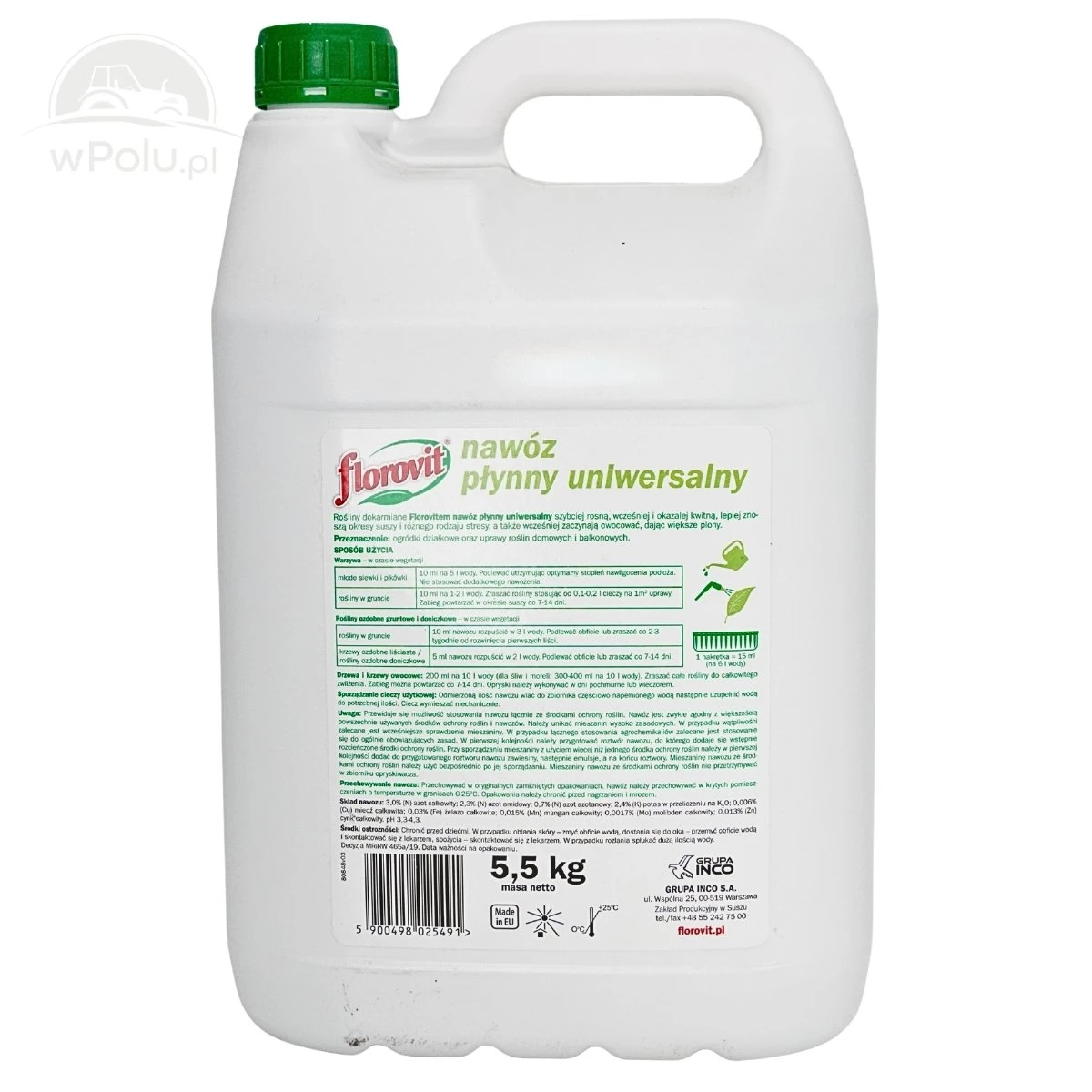 Opakowanie Florovit nawóz uniwersalny 5 l wystarczy do sporządzenia 2 000 litrów roztworu