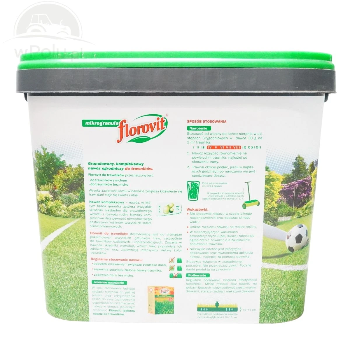 Regularne stosowanie Florovitu do trawników z mchem pobudza krzewienie i zwiększa zwartość darni, chroni przed mchem, a takżezapewnia soczystą, zieloną barwę trawnika.