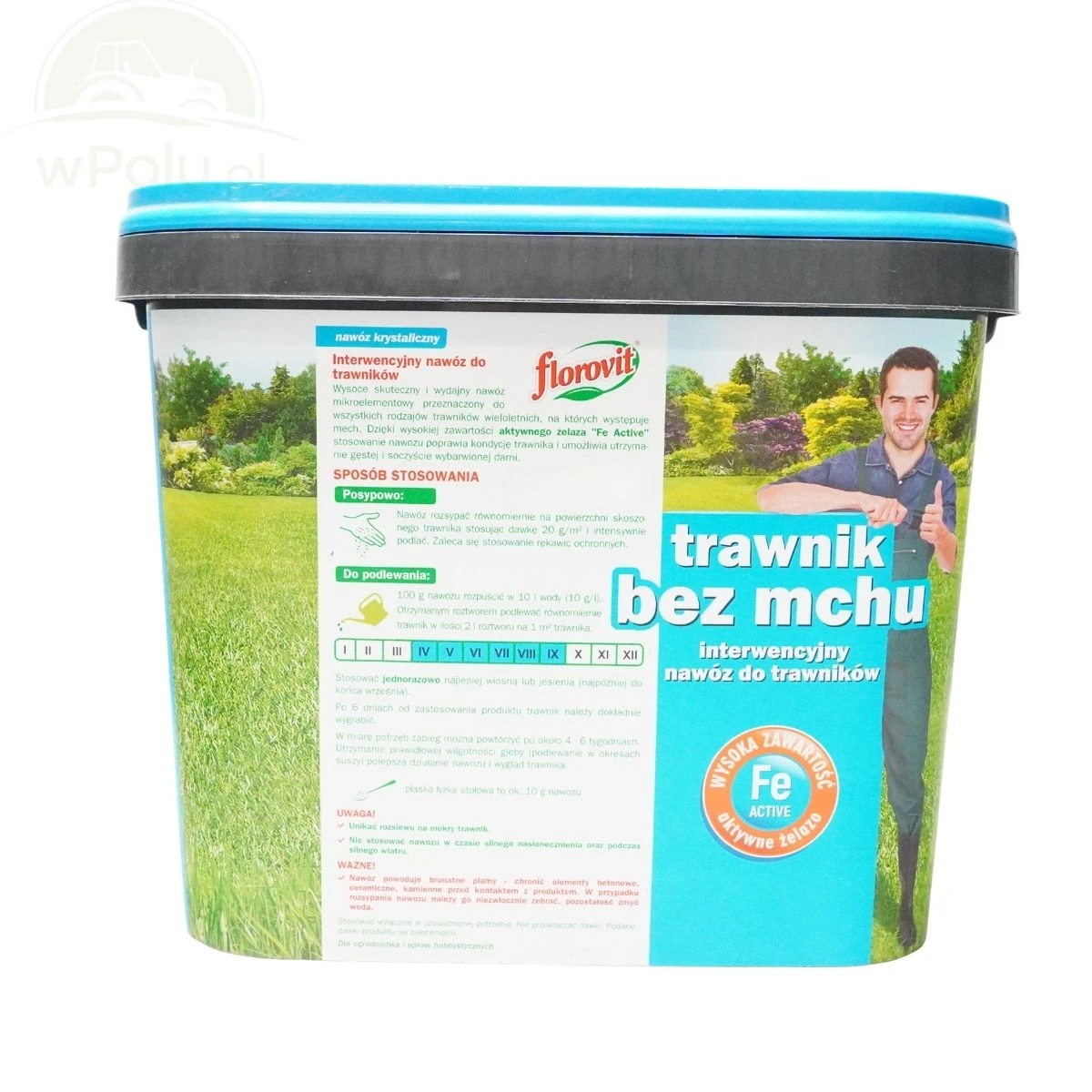 Wysoce skuteczny i wydajny nawóz przeznaczony do wszystkich rodzajów trawników wieloletnich, na których występuje mech. Umożliwia utrzymanie soczyście wybarwionej gęstej i zwartej darni trawnika bez mchu. Możliwość aplikacji posypowej jak i w postaci roztworu do podlewania.