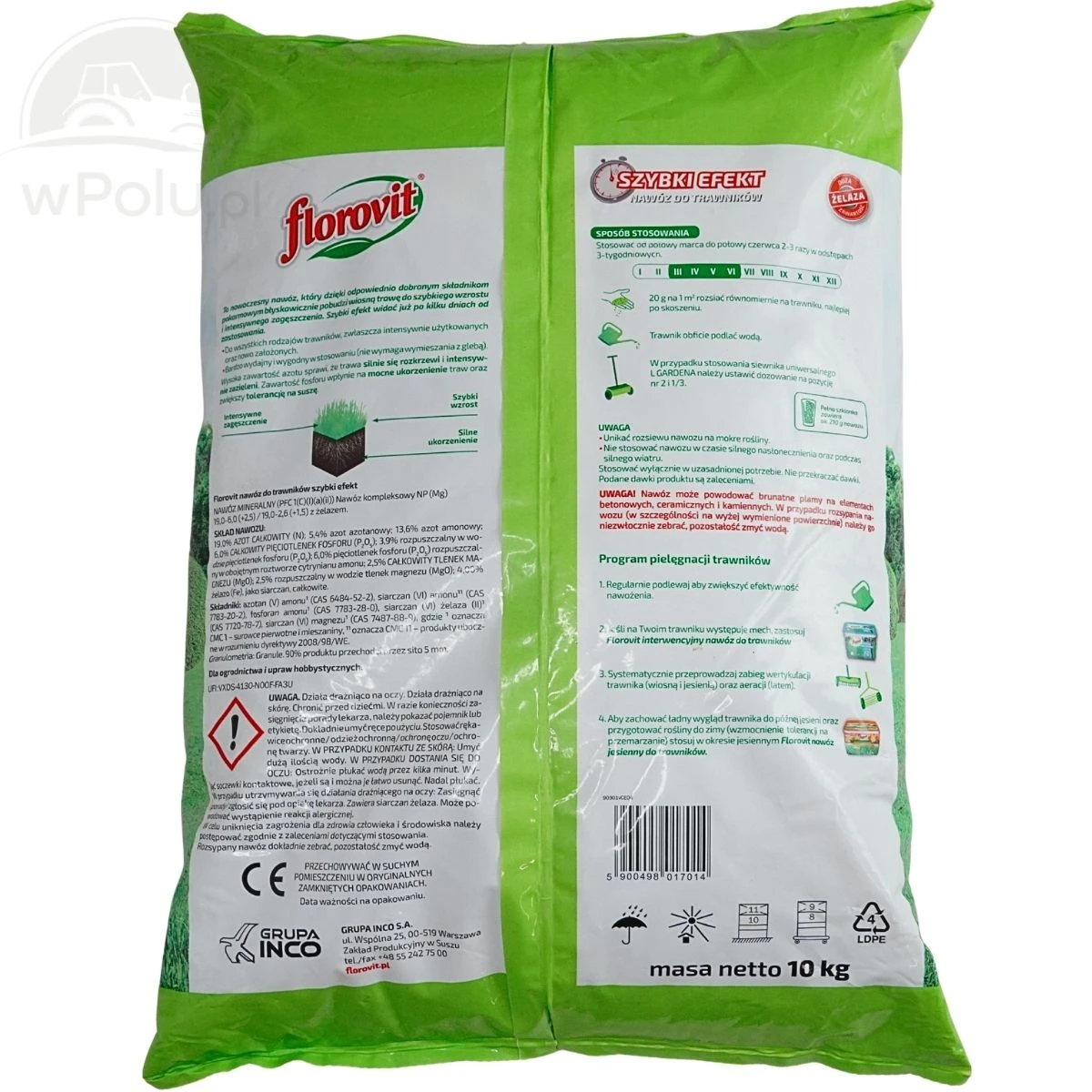 Florovit do trawników szybki efekt jest nowoczesnym nawozem pobudzającym wzrost i zagęszczanie trawy. Stosowany jest do wszystkich rodzajów trawników. Produkt jest bardzo wygodny w stosowaniu. Dużym plusem jest brak potrzeby wymieszania z glebą.