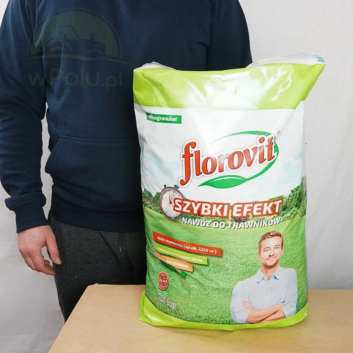 Opakowanie Florovit do trawników 25kg wystarcza na 1250 m2.