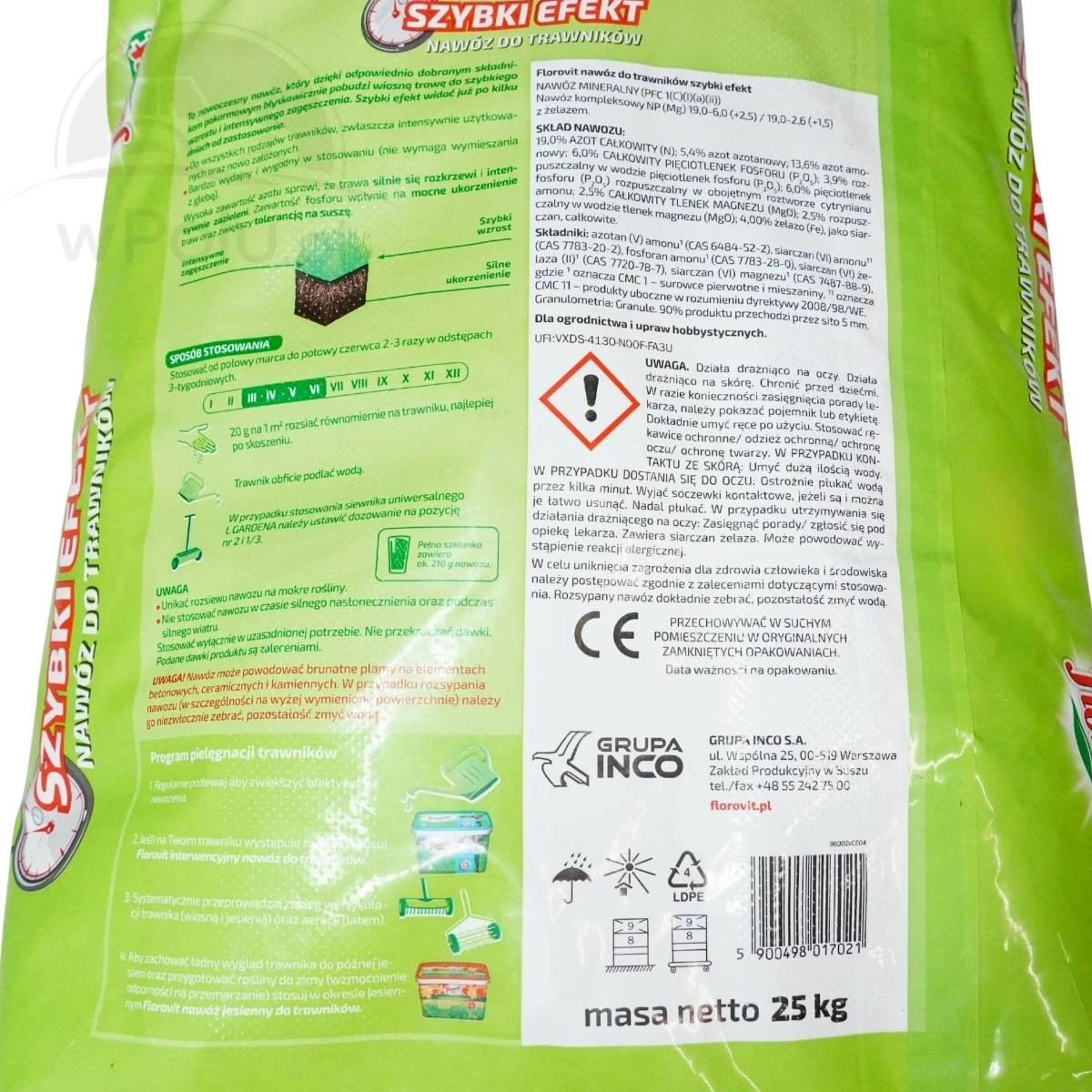 Florovit do trawników szybki efekt to nowoczesny nawóz stworzony z myślą o pobudzaniu wzrostu i zagęszczaniu trawy. Nadaje się do pielęgnacji wszystkich rodzajów trawników. Produkt wyróżnia się wygodą stosowania, a jego dużą zaletą jest brak konieczności mieszania z glebą.