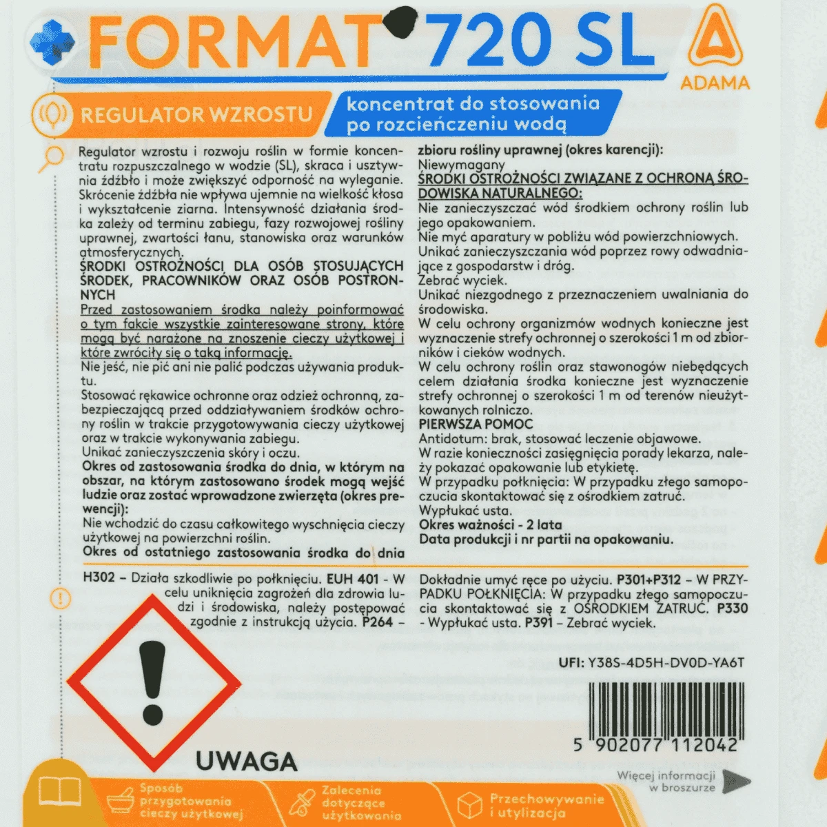 Format 720 SL to profesjonalny regulator wzrostu roślin przeznaczony do stosowania w uprawach zbóż, ze szczególnym uwzględnieniem pszenicy ozimej. Preparat ma postać koncentratu rozpuszczalnego w wodzie (SL) i jest przeznaczony wyłącznie do użytku przez użytkowników profesjonalnych, zgodnie z obowiązującym zezwoleniem MRiRW.