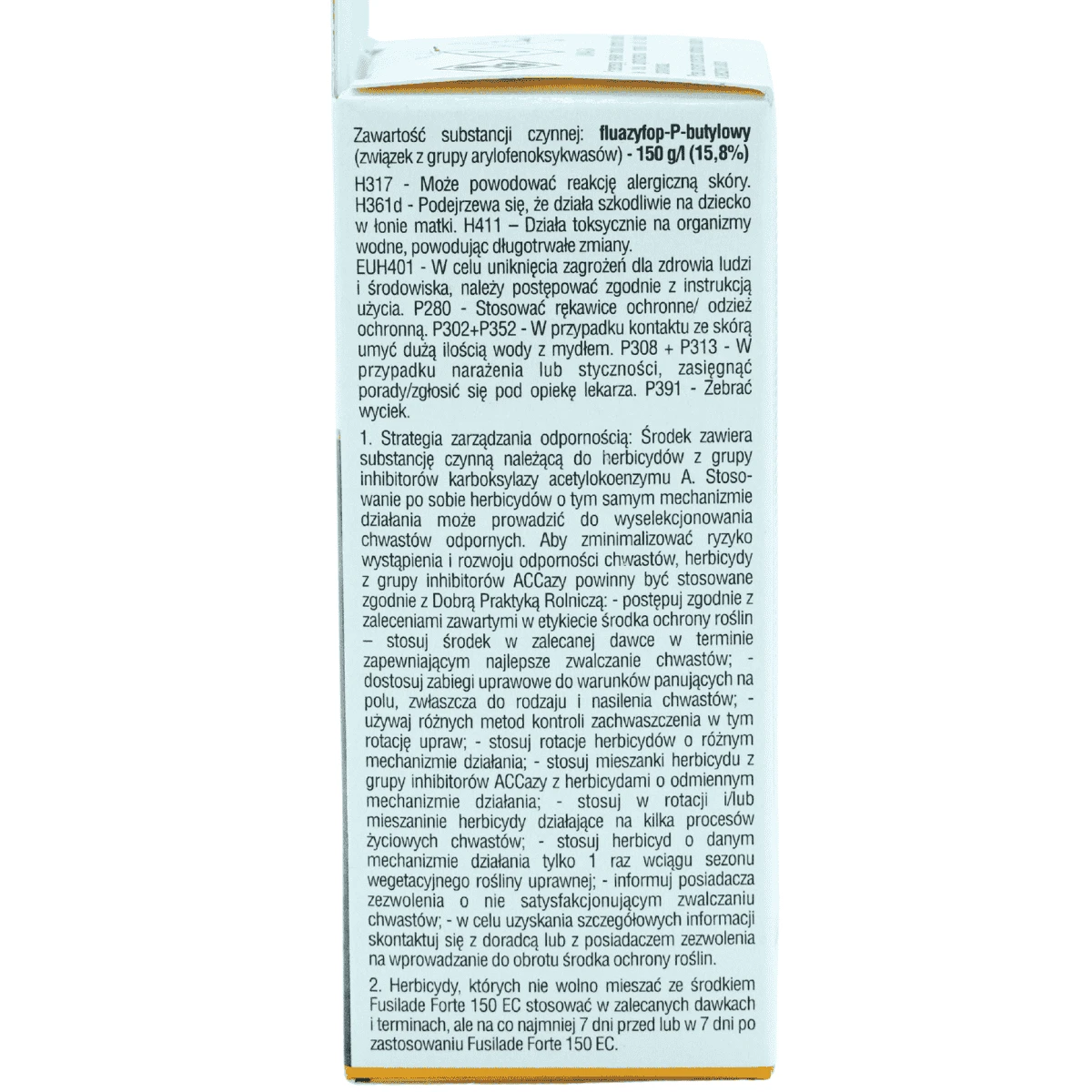Fusilade® Forte 150 EC to selektywny herbicyd układowy przeznaczony do nalistnego zwalczania chwastów jednoliściennych. Preparat stosowany jest w formie koncentratu do sporządzania emulsji wodnej. Działa systemicznie – pobierany jest przez liście, a następnie przemieszcza się do rozłogów i korzeni chwastów, skutecznie hamując ich wzrost i rozwój. Środek wykazuje skuteczność w szerokim zakresie upraw – dopuszczony do stosowania w ponad 60 gatunkach roślin uprawnych w Polsce. Preparat charakteryzuje się szybkim pobieraniem przez liście i przemieszczaniem w całej roślinie. Widoczne efekty działania pojawiają się po 2–3 tygodniach od zabiegu. Ciepła pogoda i wilgotna gleba przyspieszają skuteczność, natomiast niska temperatura może opóźnić działanie, nie obniżając jego efektu.