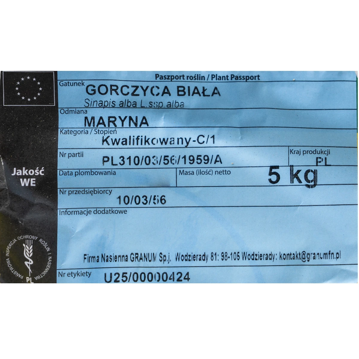 Gorczyca biała Maryna (Sinapis alba) to jednoroczna roślina z rodziny kapustowatych, szczególnie ceniona w rolnictwie. Charakteryzuje się średnią wysokością pomiędzy 50-150 cm, łodygi są sztywne, rozgałęzione u góry. Posiada również liczne, zebrane w grona, żółte kwiaty które są bardzo atrakcyjne dla owadów zapylających. Kolejną pożądaną cecha jest również to że ma właściwości fitosanitarne ograniczające występowanie mątwika. Dzięki temu plony roślin następczych są wyższe i zdrowsze.