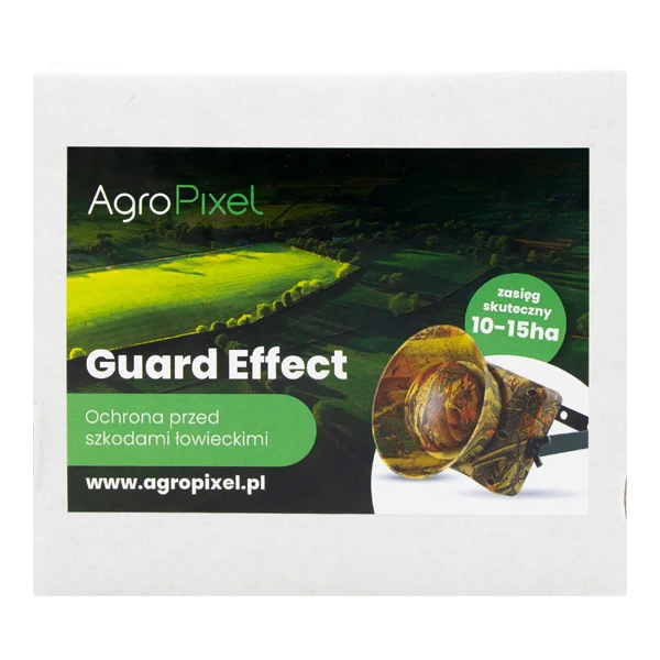 Glośnik uaktywnia się i przechodzi w tryb uśpienia o wybranych godzinach, dzięki czemu chroni uprawę w porze żerowania zwierzyny. Zasięg odstraszania zwierzyny wynosi do 10-15 ha.