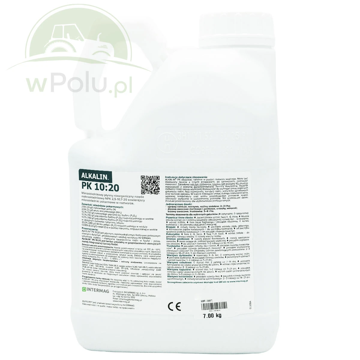 Wysokozasadowy płynny nawóz fosforowo-potasowy. Dzięki alkalicznemu odczynowi roztworów nawozu aktywizuje on czynniki odpornościowe roślin, a także wpływa na ograniczenie rozwoju chorób grzybowych. Umożliwia prawidłowe dostarczenie zawartych w nim pierwiastków, ajednocześnie wspomaganie ochrony roślin. W zależności od terminu stosowania nawóz Alkalin PK 10:20 poprawia zimotrwałość roślin, intensyfikuje rozwój części wegetatywnych roślin oraz zwiększa parametry jakościowe plonu.