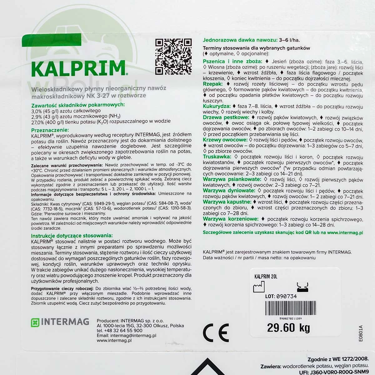 KALPRIM® służy do dokarmiania dolistnego roślin uprawnych w celu szybkiego dostarczenia łatwo przyswajalnego potasu. Może być stosowany zarówno profilaktycznie, jak i interwencyjnie – w przypadku wystąpienia widocznych lub ukrytych niedoborów potasu .