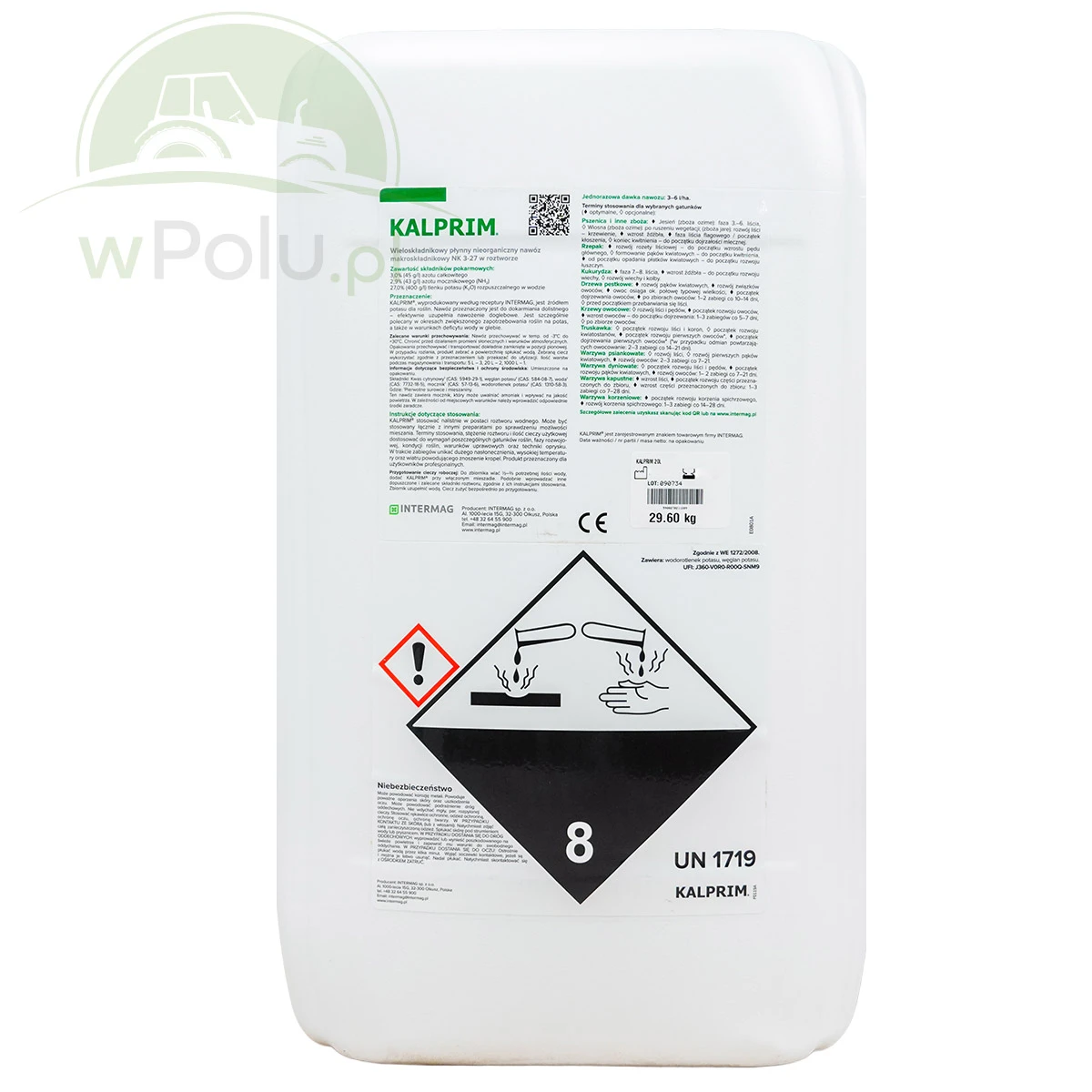 KALPRIM® to płynny nawóz potasowy wyprodukowany według receptury Intermag, przeznaczony do dolistnego dokarmiania roślin. Stanowi wydajne i szybko przyswajalne źródło potasu, kluczowego pierwiastka odpowiedzialnego za prawidłowy rozwój roślin, jakość plonu oraz ich odporność na stresy środowiskowe. Preparat efektywnie uzupełnia nawożenie doglebowe, szczególnie w sytuacjach, gdy pobieranie potasu z gleby jest ograniczone.