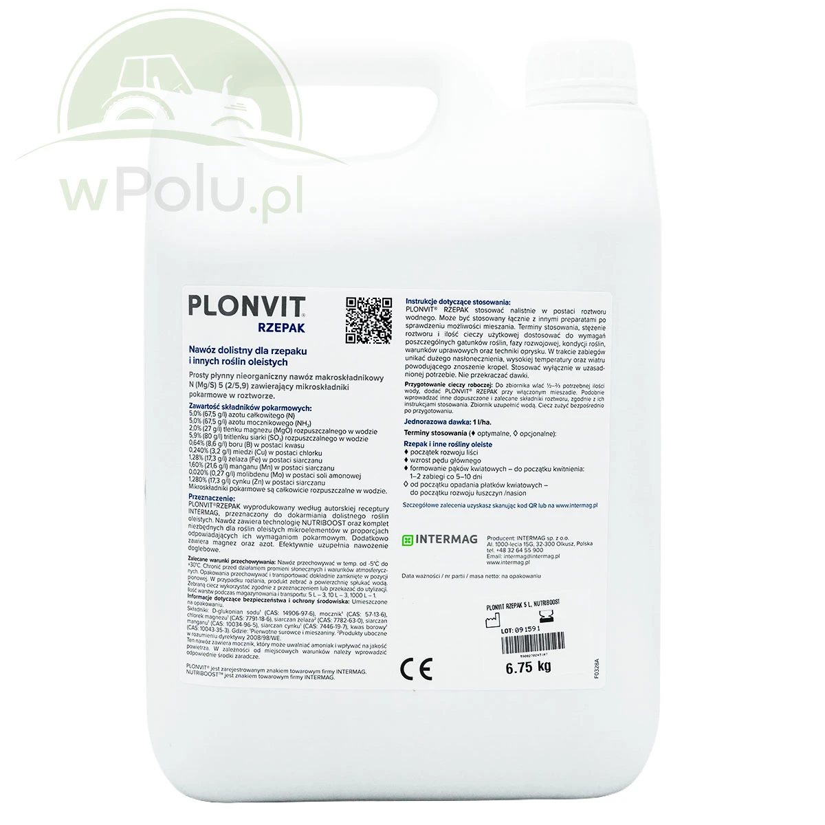 Produkt w opakowaniu o pojemności 5 litrów, czyni go wygodnym rozwiązaniem dla większych upraw rzepaku. Przy zalecanej dawce stosowania, jedno takie opakowanie wystarcza na 5 hektarów, co odpowiada 50 000 m² powierzchni.