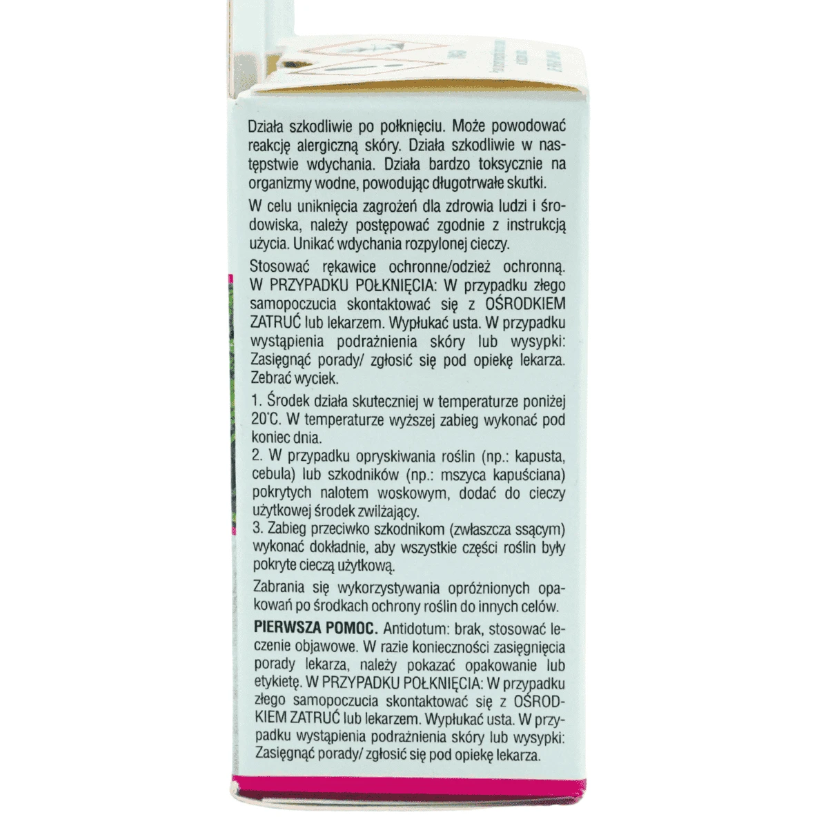 Ze środków ochrony roślin należy korzystać z zachowaniem bezpieczeństwa. Przed użyciem przeczytaj etykietę oraz opis działania produktu. Środki ochrony roślin do użytku profesjonalnego mogą być nabyte tylko i wyłącznie przez osoby pełnoletnie oraz posiadające kwalifikacje wymagane od osób nabywających środki ochrony roślin określone w ustawie o środkach ochrony roślin. Niespełnienie powyższych warunków jest złamaniem regulaminu sklepu.