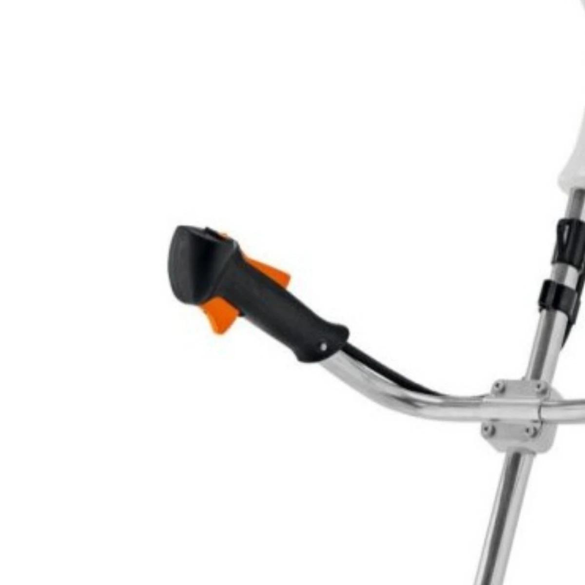 Kosa spalinowa STIHL FS 56 to wydajne narzędzie przeznaczone do regularnej pielęgnacji większych ogrodów i terenów zielonych. Wyposażona w prosty wysięgnik, zoptymalizowaną przekładnię oraz mocny silnik 2-MIX, zapewnia skuteczne koszenie także twardej i przerośniętej trawy. Na zdjęciu widoczne jest ergonomiczne wykonanie urządzenia: oburęczny uchwyt typu „rowerowego”, wygodne elementy sterujące oraz charakterystyczna dla marki STIHL kolorystyka – biel, czerń i pomarańcz.