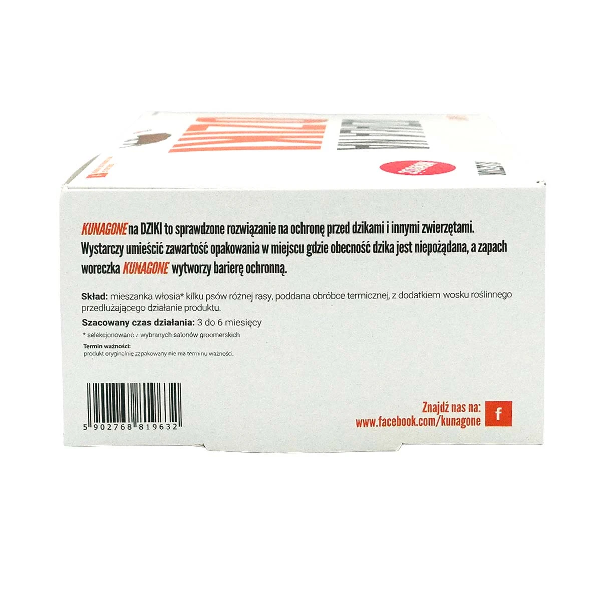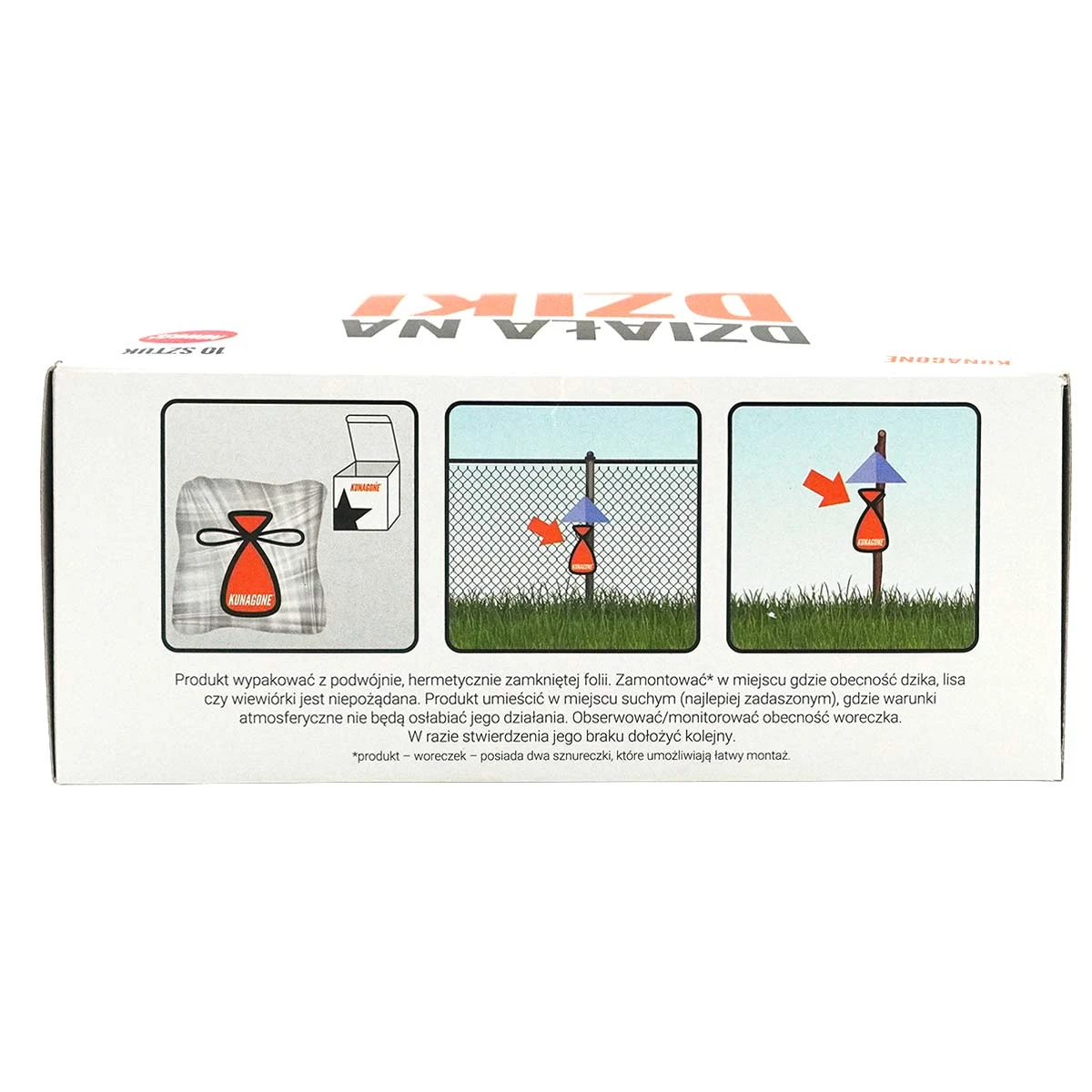 Kunagone na dziki to skuteczny, naturalny odstraszacz stworzony z myślą o ochronie ogrodów, posesji i terenów zielonych przed dzikami oraz innymi zwierzętami, takimi jak lisy czy wiewiórki. To opatentowany polski produkt, który działa w oparciu o naturalne zapachy i jest w pełni bezpieczny dla ludzi i zwierząt. W opakowaniu znajduje się 10 woreczków.