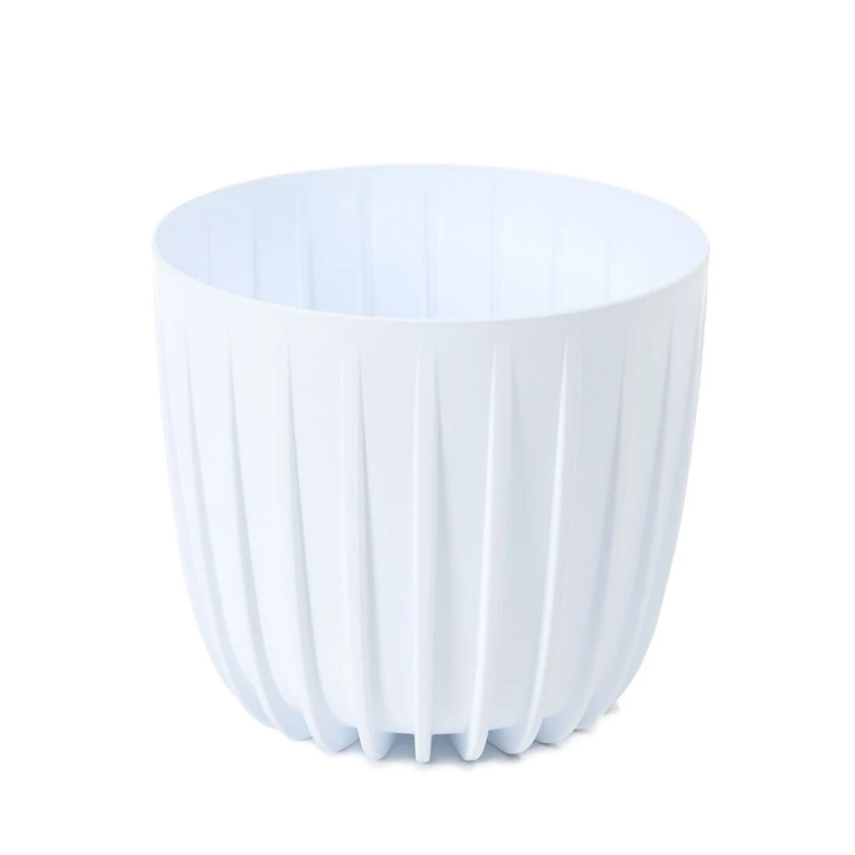 Doniczka osłonka MIRA niska średnica 24 cm biała to estetyczna i funkcjonalna osłonka wykonana z trwałego tworzywa sztucznego o matowej powierzchni. Produkt wyróżnia się prostą formą delikatnie zwężającą się ku dołowi oraz subtelnymi pionowymi żłobieniami, które nadają mu nowoczesny i uporządkowany wygląd. Neutralny biały kolor sprawia, że doniczka dobrze komponuje się z różnymi stylami aranżacji – od minimalistycznych i skandynawskich po klasyczne wnętrza. Solidne wykonanie zapewnia odporność na uszkodzenia oraz estetyczny wygląd przez długi czas użytkowania.