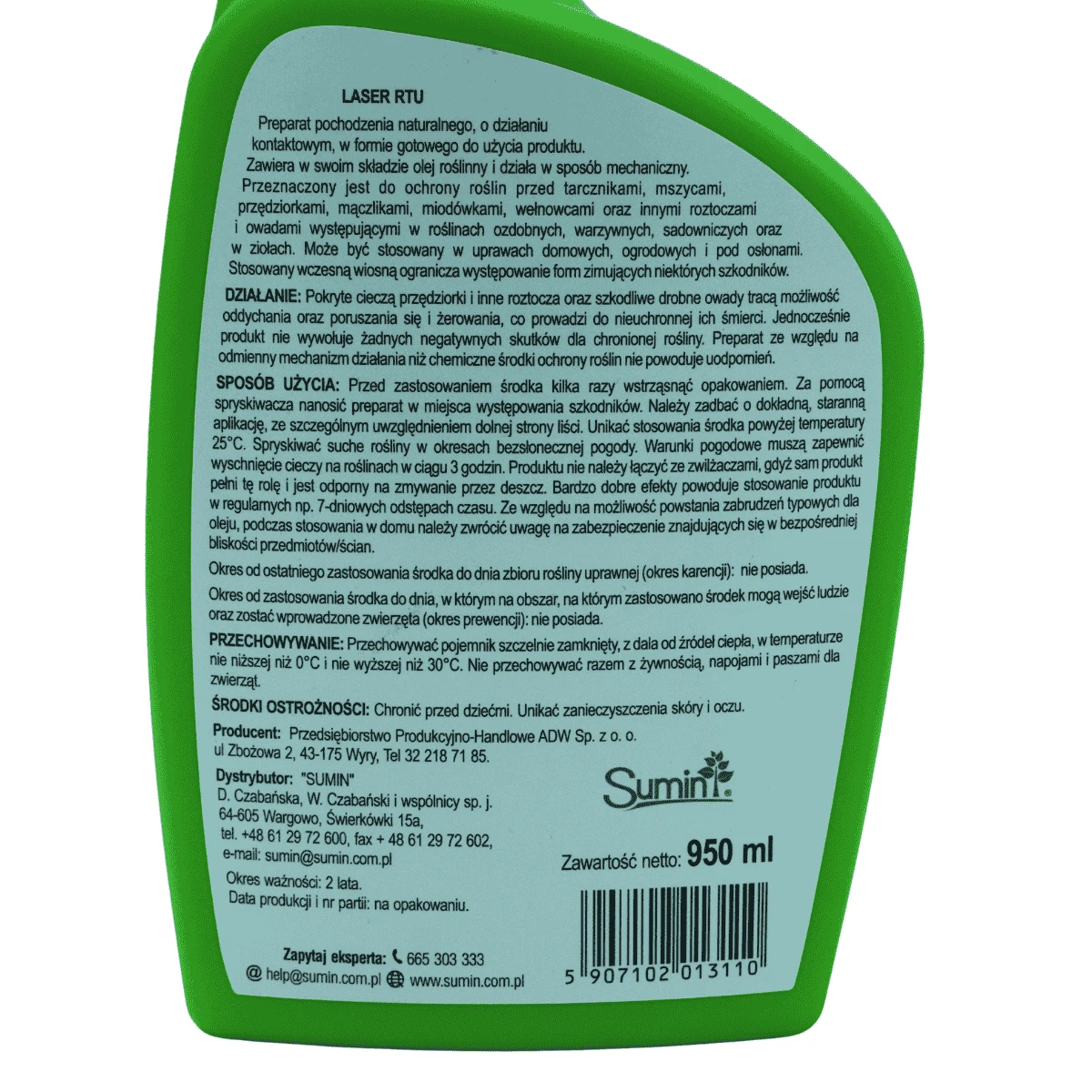 Preparat pochodzenia naturalnego, o działaniu kontaktowym, w formie gotowego do użycia produktu. Zawiera w swoim składzie olej roślinny i działa w sposób mechaniczny. Przeznaczony jest do ochrony roślin przed tarcznikami, mszycami, przędziorkami, mączlikami, miodówkami, wełnowcami oraz innymi roztoczami i owadami występującymi w roślinach ozdobnych, warzywnych, sadowniczych oraz w ziołach. Może być stosowany w uprawach domowych, ogrodowych i pod osłonami. Stosowany wczesną wiosną ogranicza występowanie form zimujących niektórych szkodników.