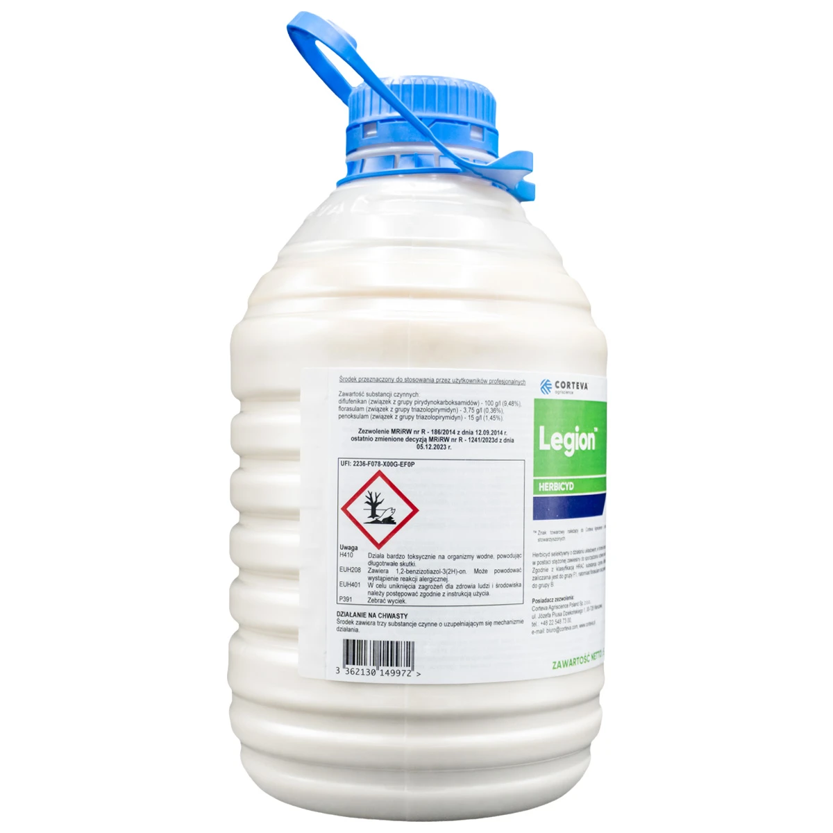 DO RABATU NA WYSYŁKĘ: 1000 złLegion™ to kompletny herbicyd jesienny przeznaczony do stosowania we wszystkich zbożach ozimych – pszenicy ozimej, pszenżycie ozimym, życie oraz jęczmieniu ozimym. Jest to nowoczesny środek chwastobójczy do powschodowego, jesiennego zwalczania miotły zbożowej oraz licznych chwastów dwuliściennych. Środek zawiera trzy substancje czynne o uzupełniającym się mechanizmie działania.