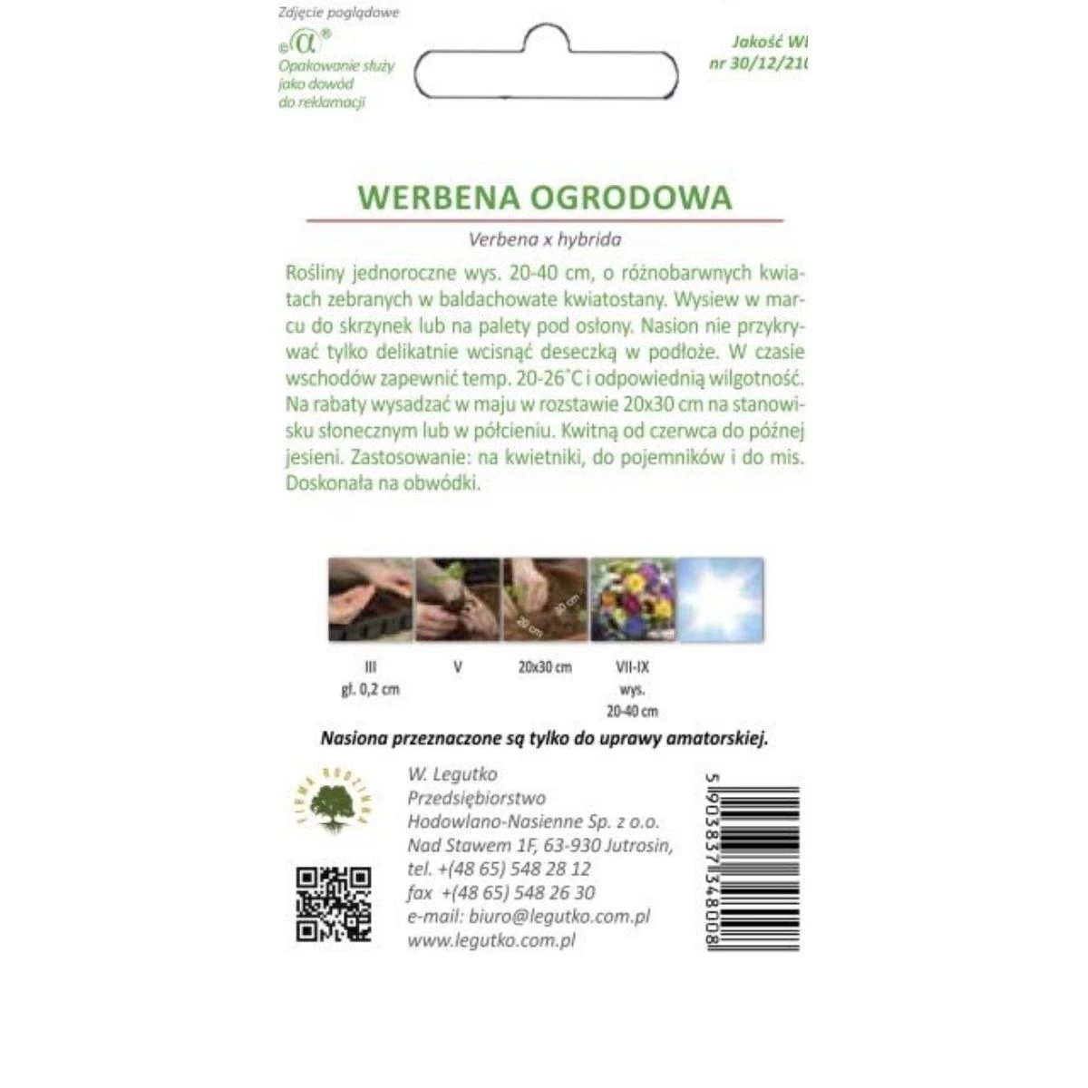 Werbena ogrodowa – mieszanka 0,5 g to jednoroczne rośliny ozdobne osiągające 20–40 cm wysokości, tworzące zwarte kępy z licznymi, barwnymi kwiatami skupionymi w dekoracyjne, baldachowate kwiatostany. Mieszanka zachwyca różnorodnością kolorów oraz długim okresem kwitnienia, który rozpoczyna się w czerwcu i trwa aż do późnej jesieni. Nasiona wysiewa się w marcu pod osłonami, a rozsadę sadzi na rabaty w maju, zachowując rozstawę 20 × 30 cm. Rośliny najlepiej rozwijają się na stanowiskach słonecznych lub w lekkim półcieniu.