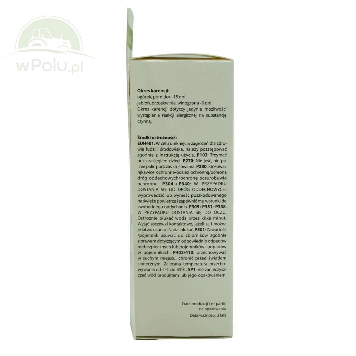 | Jabłoń, brzoskwinia | parch jabłoni, mączniak jabłoni, kędzierzawość liści brzoskwini | 7–10 ml / 1 l wody | 2–6 zabiegów co 7 dni |