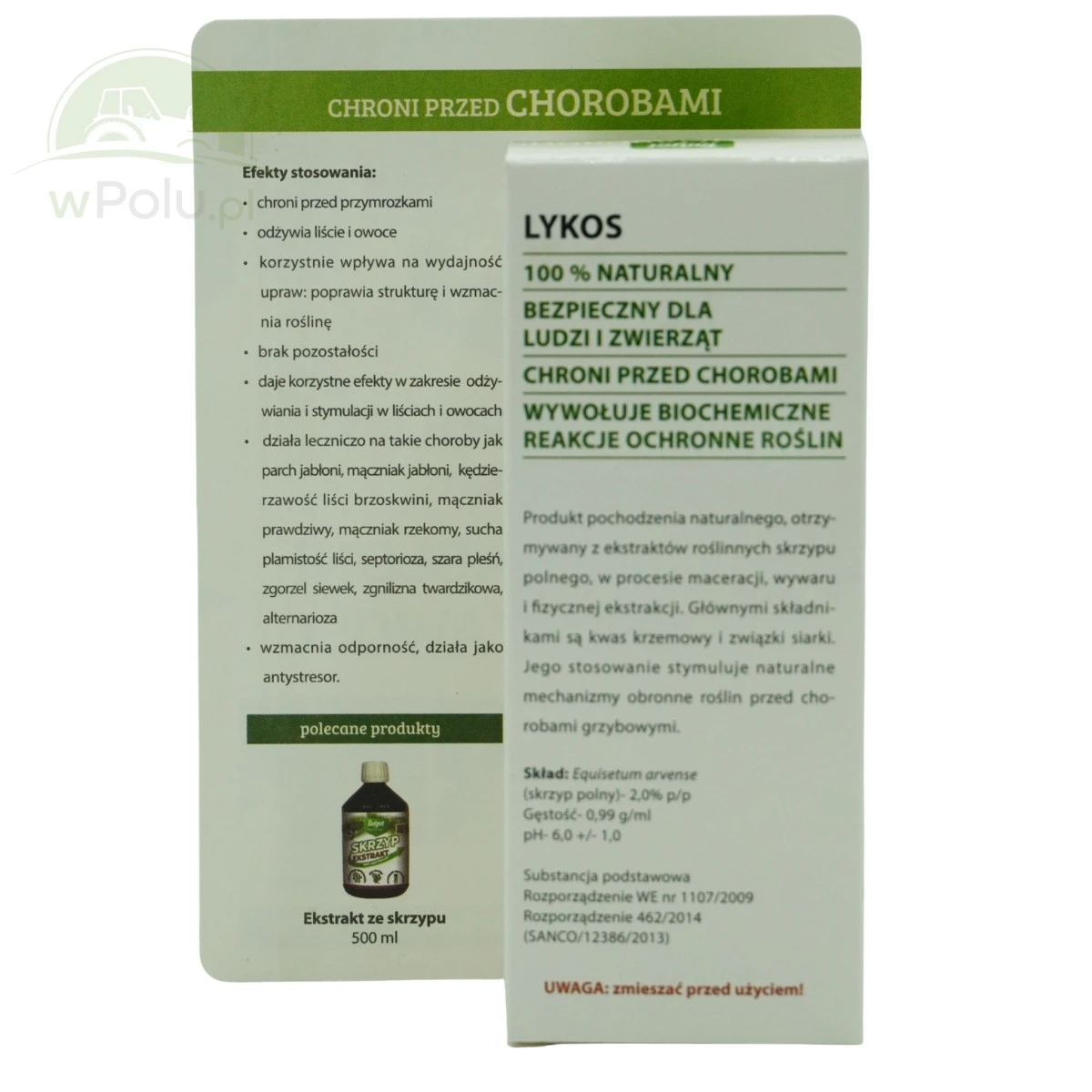 Lykos – Ekstrakt ze skrzypu polnego to naturalny i bezpieczny sposób na zdrowe, silne i odporne rośliny. Dzięki niemu Twoje uprawy będą dobrze chronione przed chorobami, a Ty zyskasz pewność, że dbasz o ogród w zgodzie z naturą.