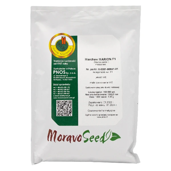 Marion F1 to mieszańcowa wczesna odmiana marchwi w typie nantejskim. Charakteryzuje ją wysoka plenność oraz bardzo dobra struktura plonu. Świetnie sprawdzi się do uprawy przyspieszonej pod osłonami na wczesny zbiór pęczkowy, a także do całorocznej uprawy w polu. Dzięki silnej naci nadaje się do zbioru mechanicznego. Zaleca się jej uprawę na redlinach. Marchew Marion F1 ma cylindryczne, tępo zakończone korzenie o długości ok. 18-22 cm o wyrównanej i intensywnej barwie. Nie mają tendencji do zielenienia.
