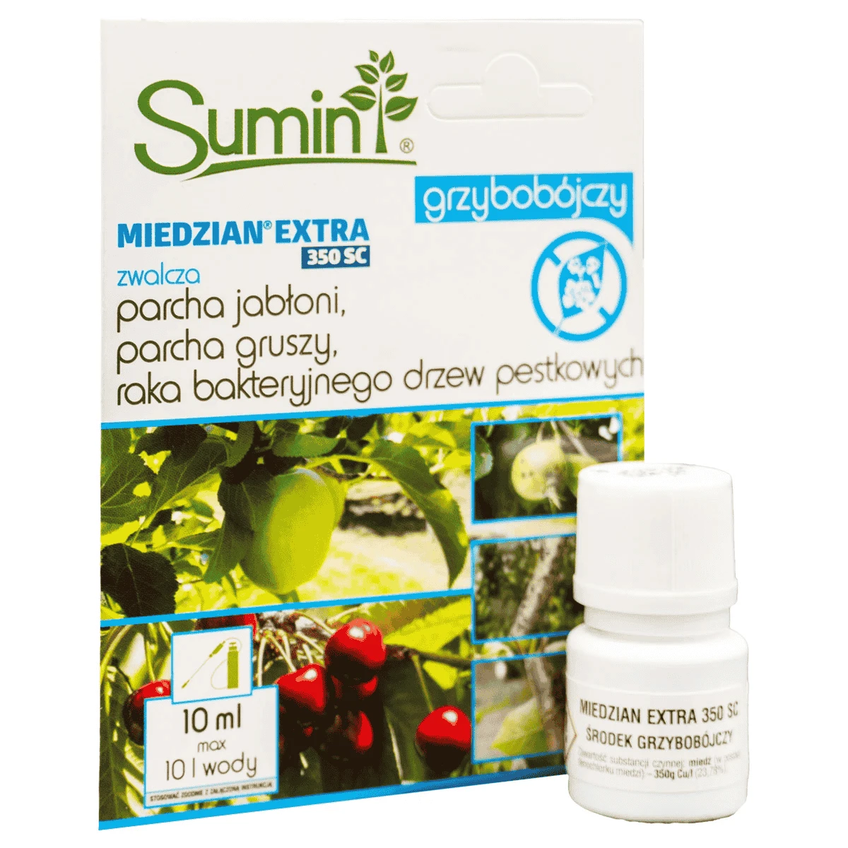 DO RABATU NA WYSYŁKĘ: 1000 złMiedzian Extra 350 SC to fungicyd i bakteriocyd w formie stężonej zawiesiny do rozcieńczania wodą (SC), przeznaczony do zapobiegawczego zwalczania chorób grzybowych i bakteryjnych w uprawach sadowniczych. Środek działa powierzchniowo – tworzy na roślinach ochronną warstwę zabezpieczającą przed infekcjami. Produkt przeznaczony jest do stosowania przez użytkowników nieprofesjonalnych w sadach przydomowych, na działkach i w ogrodach.