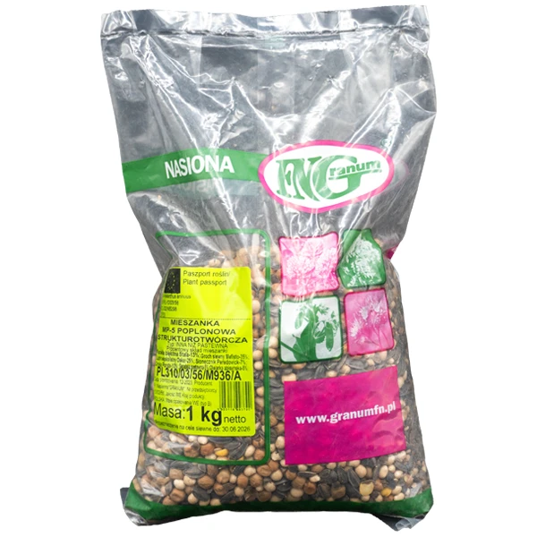 Mieszanka MP-5 to wielogatunkowy poplon strukturotwórczy o kompleksowym działaniu, który łączy w sobie zalety roślin bobowatych i innych gatunków roślin uprawnych. Jej regularne stosowanie w gospodarstwie pozytywnie wpływa na żyzność, strukturę i zdrowotność gleby, a także wspiera naturalną gospodarkę składnikami odżywczymi. To uniwersalne rozwiązanie, które sprzyja zarówno zwiększeniu plonów, jak i utrzymaniu dobrej kondycji stanowiska pod przyszłe uprawy.