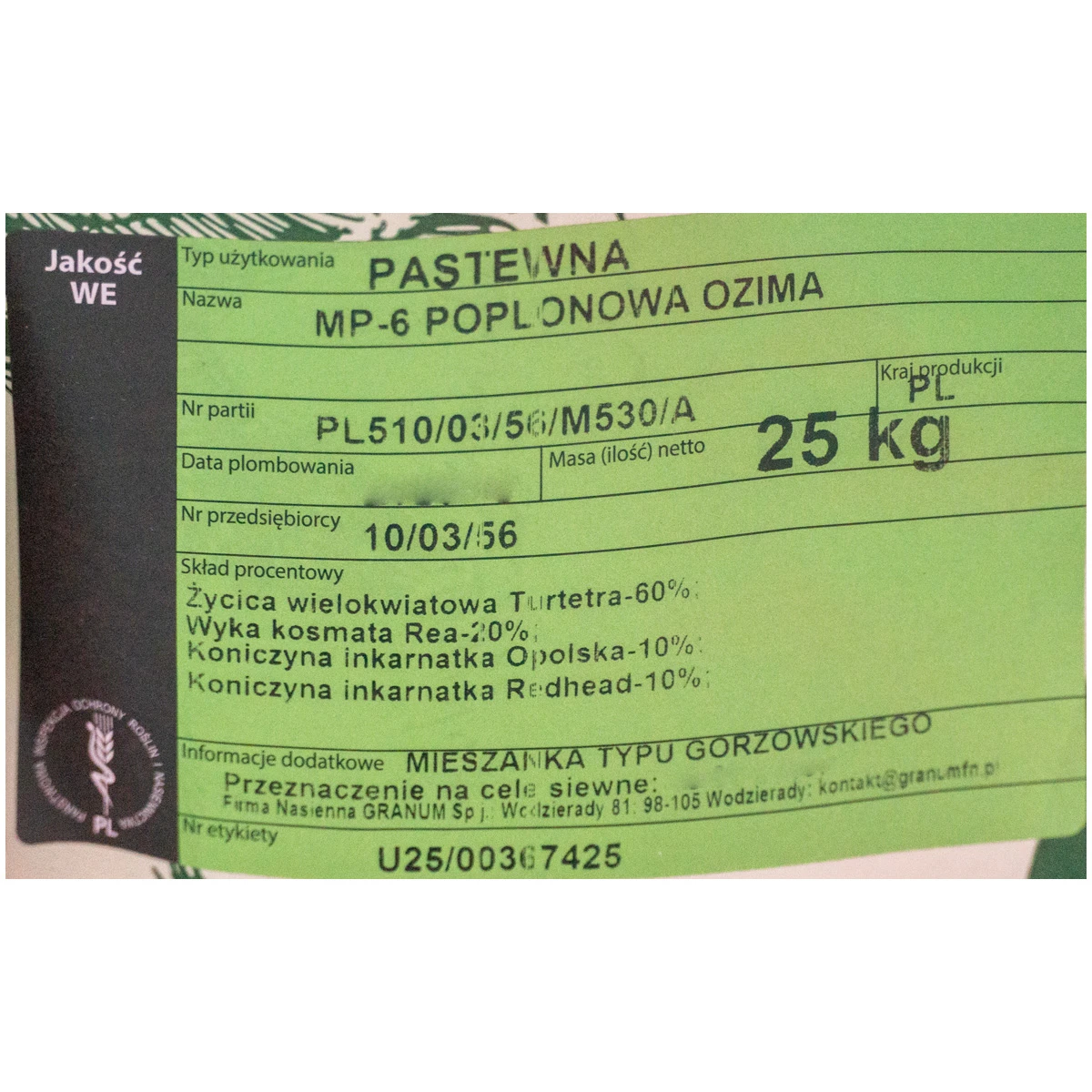 MP-6 typu to ozima mieszanka poplonowa o wysokiej zawartości białka i znakomitych właściwościach strukturotwórczych. Dzięki szybkiemu wzrostowi i dużej ilości masy zielonej, świetnie sprawdza się jako pasza dla zwierząt oraz przedplon przed zbożami i innymi roślinami uprawnymi.