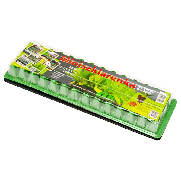 Miniszklarenka firmy JRK to mała szklarnia domowa, przeznaczona do wysiewu nasion i ukorzeniania się sadzonek. Zawiera 56 komórek, każda o wymiarach zewnętrznych 160 × 525 mm. Jej zadaniem jest stworzenie odpowiednich warunków mikroklimatycznych dla rozwoju młodych roślin. Wykonana z trwałych materiałów, zapewnia łatwość w obsłudze i jest odpowiednia zarówno dla początkujących, jak i doświadczonych ogrodników. Jest lekka i pasuje na każdy parapet.