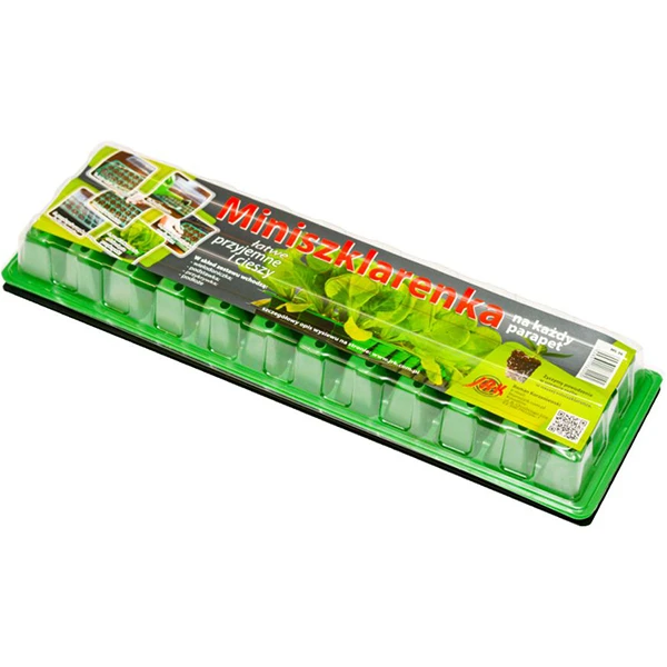 Miniszklarenka firmy JRK to mała szklarnia domowa, przeznaczona do wysiewu nasion i ukorzeniania się sadzonek. Zawiera 36 komórek, każda o wymiarach zewnętrznych 160 × 525 mm. Jej zadaniem jest stworzenie odpowiednich warunków mikroklimatycznych dla rozwoju młodych roślin. Wykonana z trwałych materiałów, zapewnia łatwość w obsłudze i jest odpowiednia zarówno dla początkujących, jak i doświadczonych ogrodników. Jest lekka i pasuje na każdy parapet.