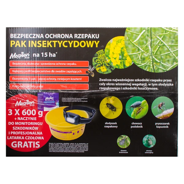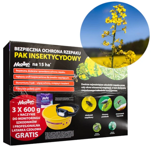 Przygotowany dla producentów rzepaku pakiet zawiera 3 opakowania 600 g Mospilanu 20 SP – dawka na 15 ha.
