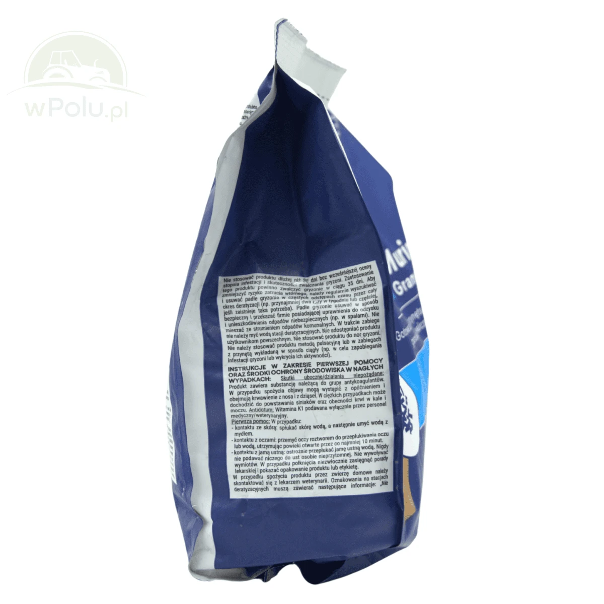 Trutka na myszy i szczury Facoum Granulat Murin to gotowa do użycia przynęta gryzoniobójcza przeznaczona do skutecznego zwalczania myszy oraz szczurów. Produkt ma postać granulatu, który jest chętnie pobierany przez gryzonie przyzwyczajone do żerowania na ziarnie. Preparat oparty jest na brodifakum – substancji czynnej z grupy antykoagulantów, działającej skutecznie nawet po spożyciu jednorazowej dawki. Odpowiednio dobrana formulacja nie wzbudza nieufności u gryzoni, co zwiększa efektywność działania środka.