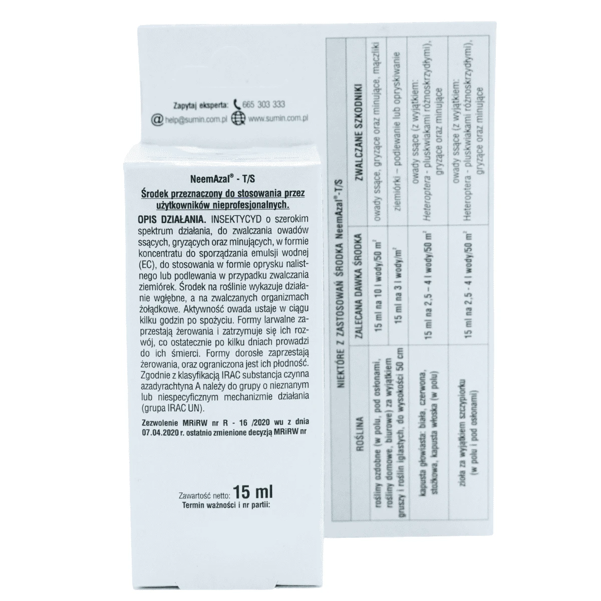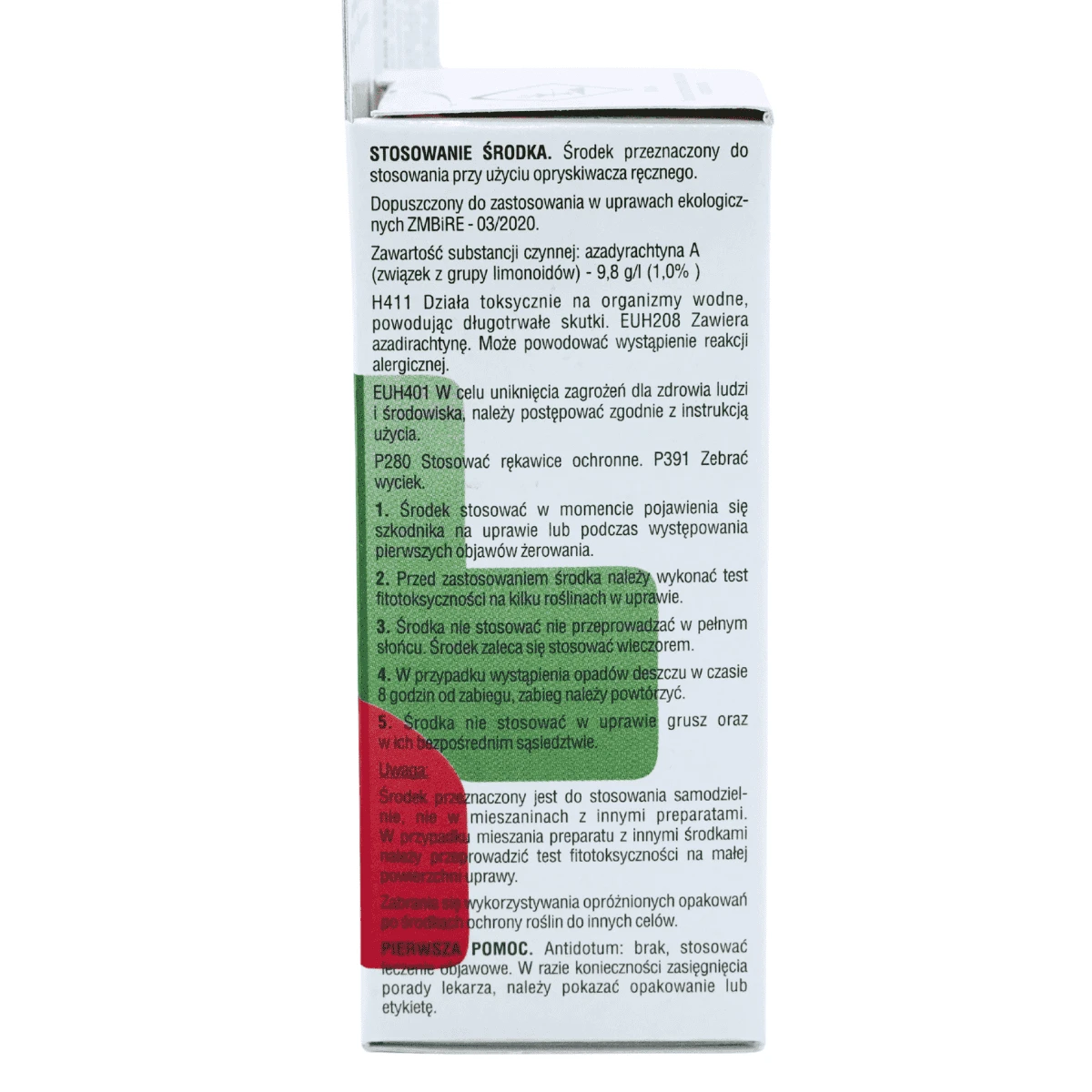 Zawiera substancję aktywną pozyskaną z ziaren tropikalnego drzewa Neem - miodli indyjskiej. Proces pozyskiwania substancji aktywnej azadyrachtyny jest dokładnie kontrolowany, co gwarantuje jej wysoką jakość oraz stabilność. Środek jest częścią biologicznej ochrony upraw w większości krajów, gdzie jest dostępny. Świetnie sprawdza się w chronie plantacji ekologicznych, szczególnie jabłoni (wysoka skuteczność zwalczania mszycy jabłoniowej i jabłoniowo babkowej) oraz ziemniaków (ochrona przed stonką ziemniaczaną).