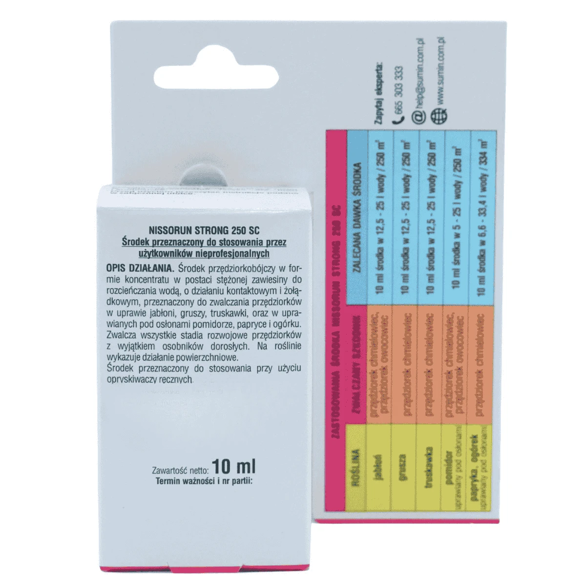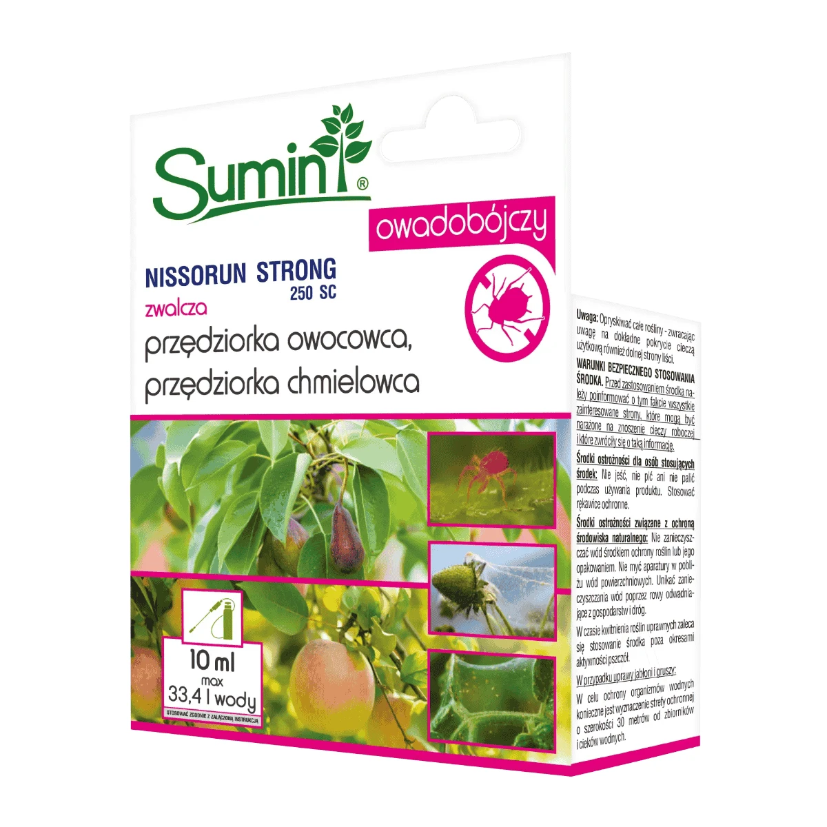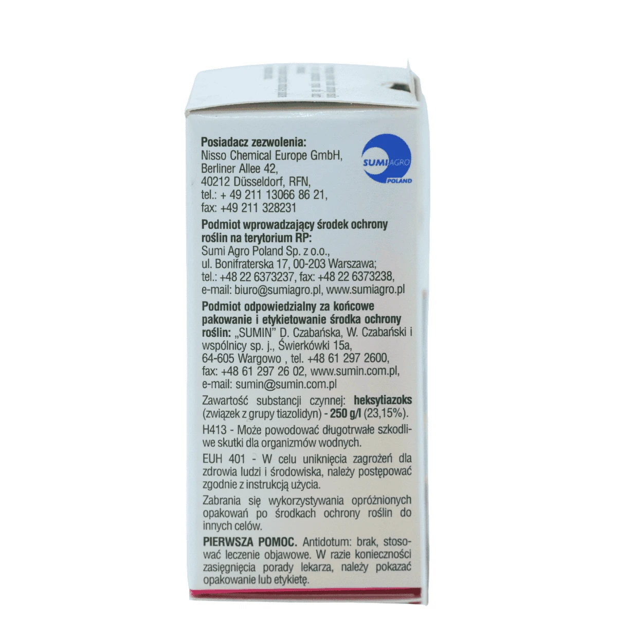 Środek przędziorkobójczy w formie koncentratu w postaci stężonej zawiesiny do rozcieńczania wodą, o działaniu kontaktowym i żołądkowym, przeznaczony do zwalczania przędziorków w uprawie jabłoni, gruszy, truskawki oraz w uprawianych pod osłonami pomidorze, papryce i ogórku. Zwalcza wszystkie stadia rozwojowe przędziorków z wyjątkiem osobników dorosłych. Na roślinie wykazuje działanie powierzchniowe.