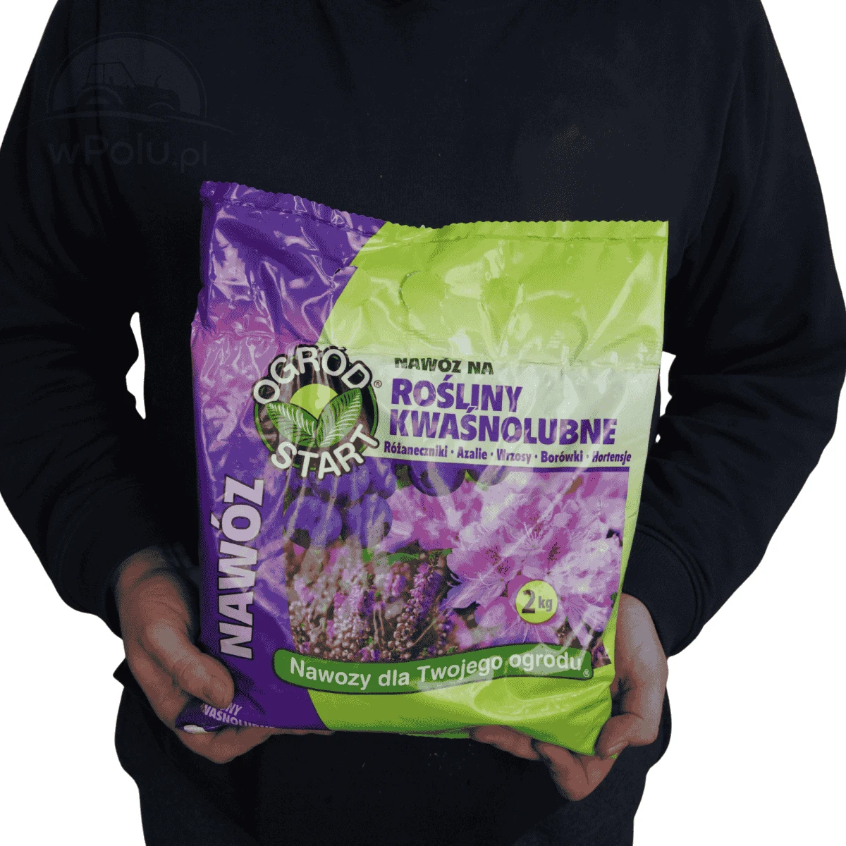 Ogród Start Nawóz do roślin kwaśnolubnych to wieloskładnikowy nawóz mineralny stworzony specjalnie z myślą o roślinach preferujących kwaśne podłoże. Produkt dostarcza niezbędnych składników odżywczych, takich jak azot, fosfor, potas i siarka, które wspierają zdrowy rozwój roślin, obfite kwitnienie oraz intensywne owocowanie. Dzięki odpowiedniej formule działa także zakwaszająco na glebę, co jest kluczowe dla roślin kwaśnolubnych, takich jak rododendrony, hortensje, azalie, wrzosy czy borówki. Nawóż ten stymuluje rozwój silnych korzeni, intensywne kwitnienie oraz poprawia jakość plonów w przypadku roślin owocujących, np. borówek, zwiększa odporność roślin na niskie temperatury i stresy środowiskowe.