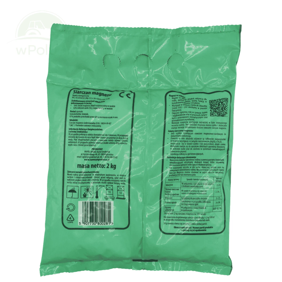 Siarczan magnezu to uniwersalny nawóz, który skutecznie usuwa niedobory siarki i magnezu w roślinach ogrodowych i szklarniowych. Jego całkowita rozpuszczalność sprawia, że doskonale sprawdza się zarówno podczas nawożenia doglebowego, jak i dolistnego, można go wykorzystać z systemami kropelkowymi i zraszaczami. Zawartość siarki koryguje pH gleby, a magnez wpływa korzystnie na barwę liści, igieł oraz trawników, zapobiegając brązowieniu igieł. Siarczan magnezu to niezawodny partner w pielęgnacji roślin, wspierający ich zdrowy wzrost i obfite plony.