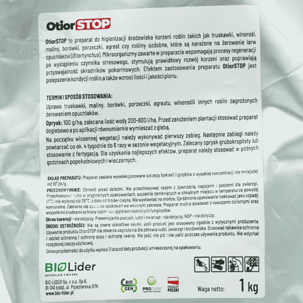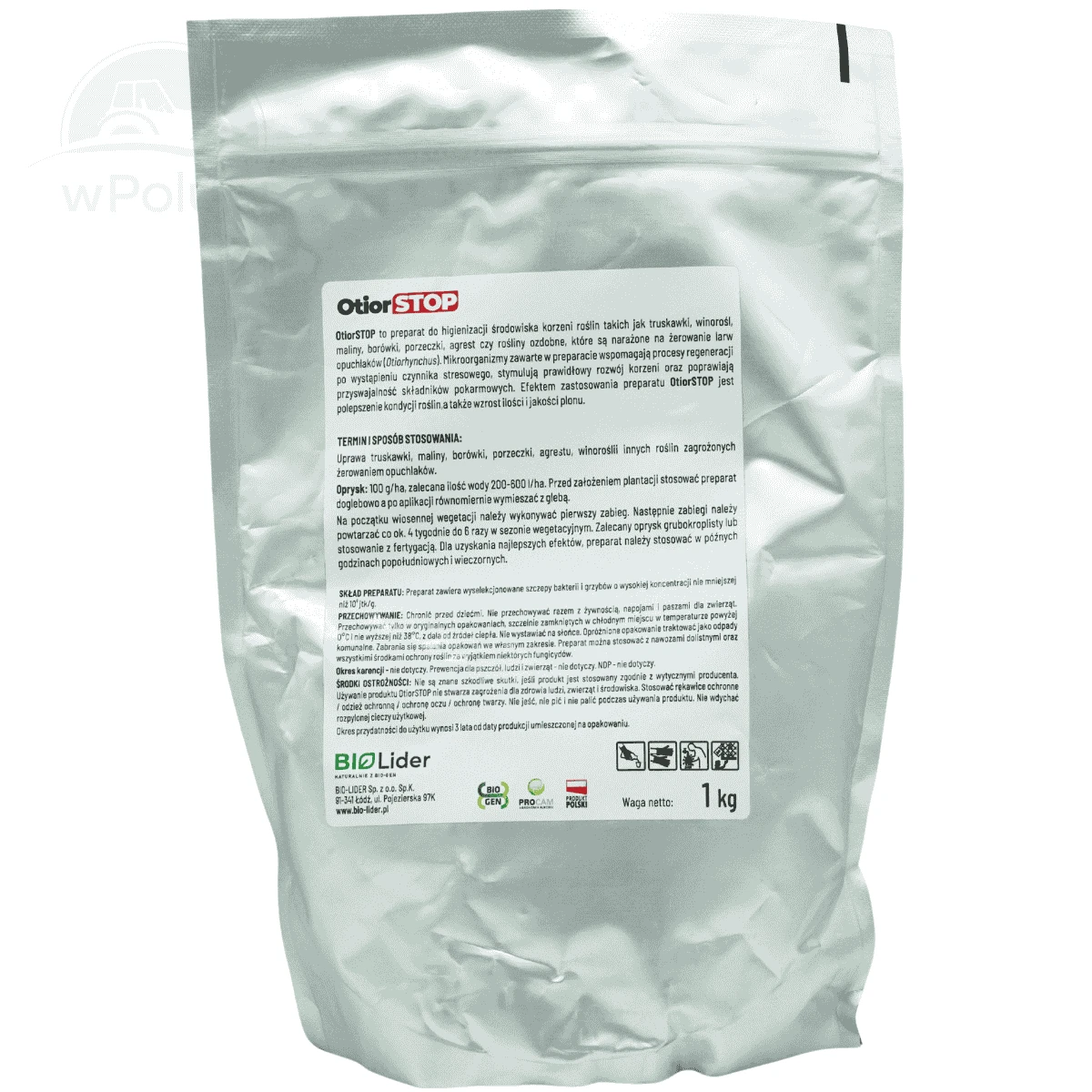 Mikrobiologiczny preparat do higienizacji środowiska korzeni roślin narażonych na żerowanie larw opuchlaków (Otiorhynchus), takich jak truskawka, malina, borówka, winorośl, agrest czy też rośliny ozdobne.