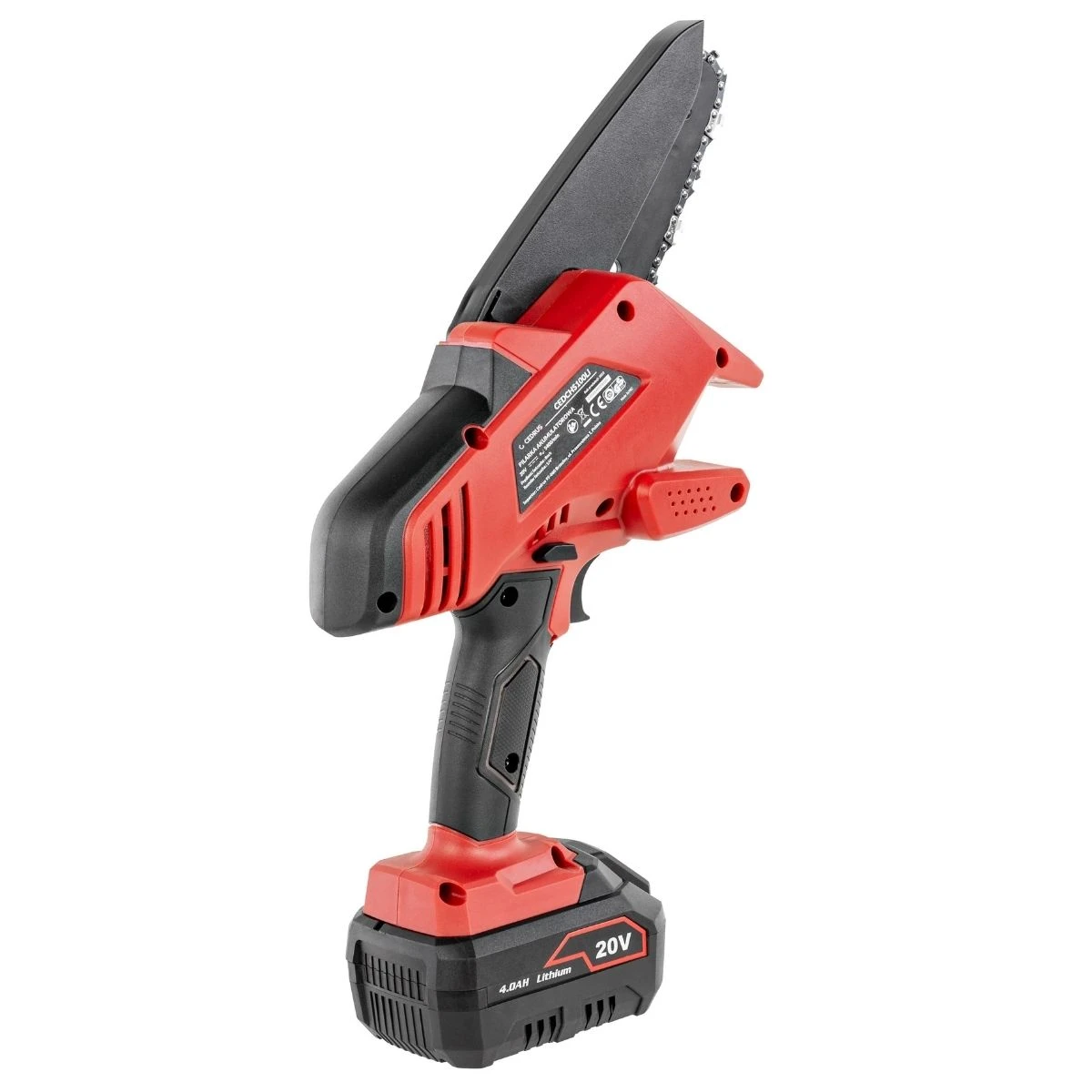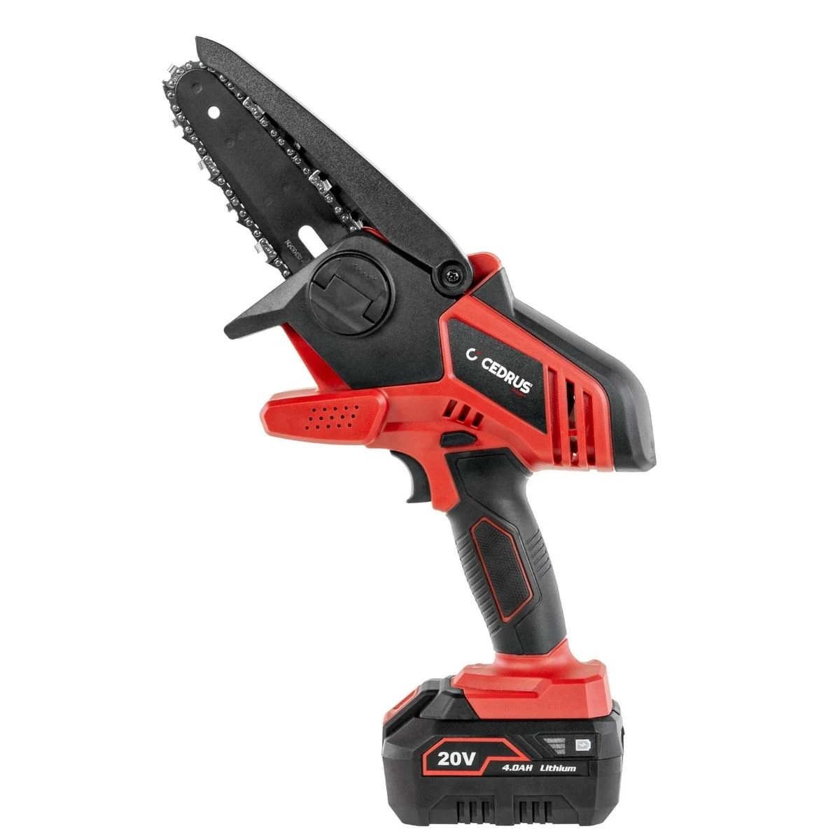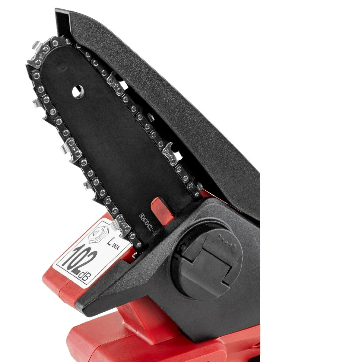 Pilarka akumulatorowa Cedrus CEDCHS100LI zapewnia wysoką mobilność, ponieważ zasilanie akumulatorem 20V umożliwia pracę bez kabli i w dowolnym miejscu. Lekka, poręczna konstrukcja o masie zaledwie 1,35 kg pozwala na komfortowe użytkowanie jedną ręką, co jest szczególnie przydatne podczas pracy między gałęziami. Zwiększone bezpieczeństwo zapewnia osłona uchwytu oraz łańcuch o niskim odbiciu, które znacząco ograniczają ryzyko odrzutu i ułatwiają kontrolę nad narzędziem. Dodatkową korzyścią jest bardzo prosta obsługa — łańcuch smaruje się ręcznie przy użyciu dołączonego zbiornika, a jego napinanie przebiega szybko i bez konieczności używania skomplikowanych narzędzi.