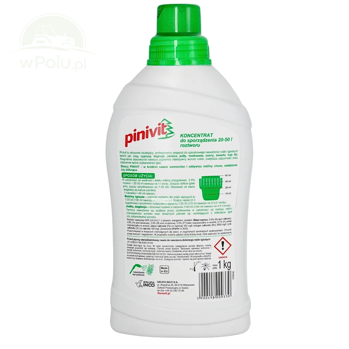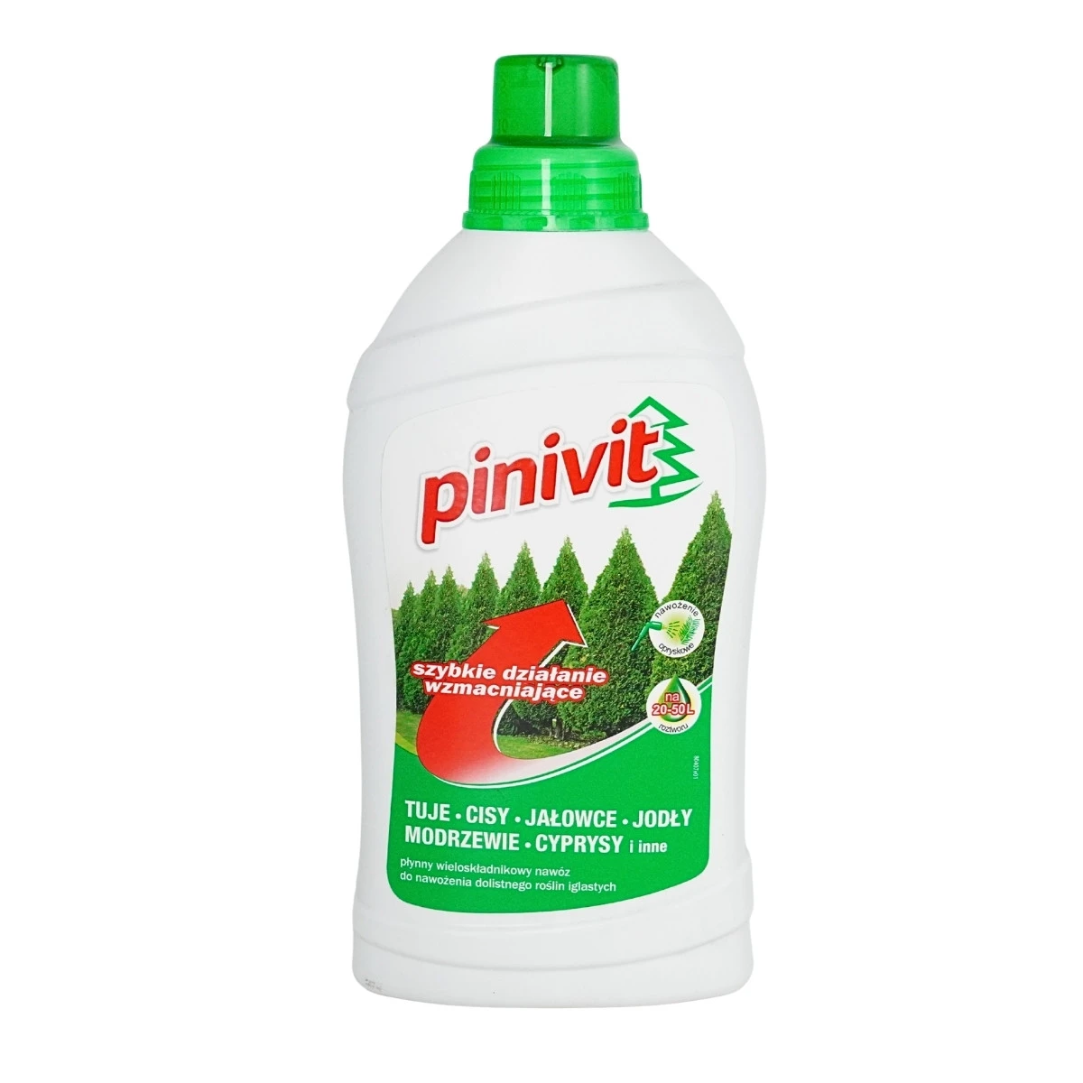 Pinivit to skoncentrowany nawóz płynny całkowicie rozpuszczalny w wodzie, przeznaczony do dolistnego nawożenia roślin iglastych. Zawiera niezbędne makro- i mikroelementy zestawione w proporcjach zapewniających harmonijny wzrost i rozwój roślin iglastych. Dzięki Pinivitowi rośliny osiągają znacznie większe przyrosty, uzyskują ładniejsze wybarwienie igliwia i poprawę zdrowotności, a także są bardziej odporne na wszelkiego rodzaju stresy.