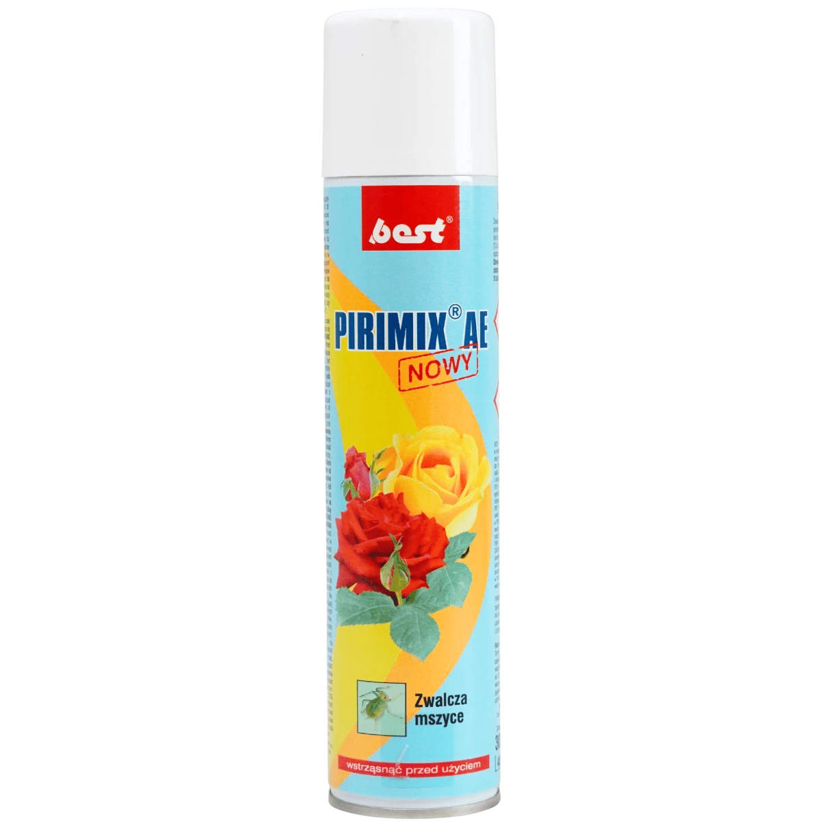 Pirimix Nowy AE-405 to gotowy do użycia aerozol przeznaczony do zwalczania mszyc na roślinach ozdobnych oraz warzywach. Preparat działa kontaktowo i żołądkowo, eliminując szkodniki żerujące na nadziemnych częściach roślin. Dzięki zawartości dwóch substancji aktywnych – permetryny i pirytryny – środek zapewnia szybkie i skuteczne działanie. Produkt zamknięty jest w poręcznym, metalowym pojemniku o pojemności 300 ml, wyposażonym w rozpylacz, który umożliwia precyzyjne naniesienie preparatu bezpośrednio na powierzchnię roślin.