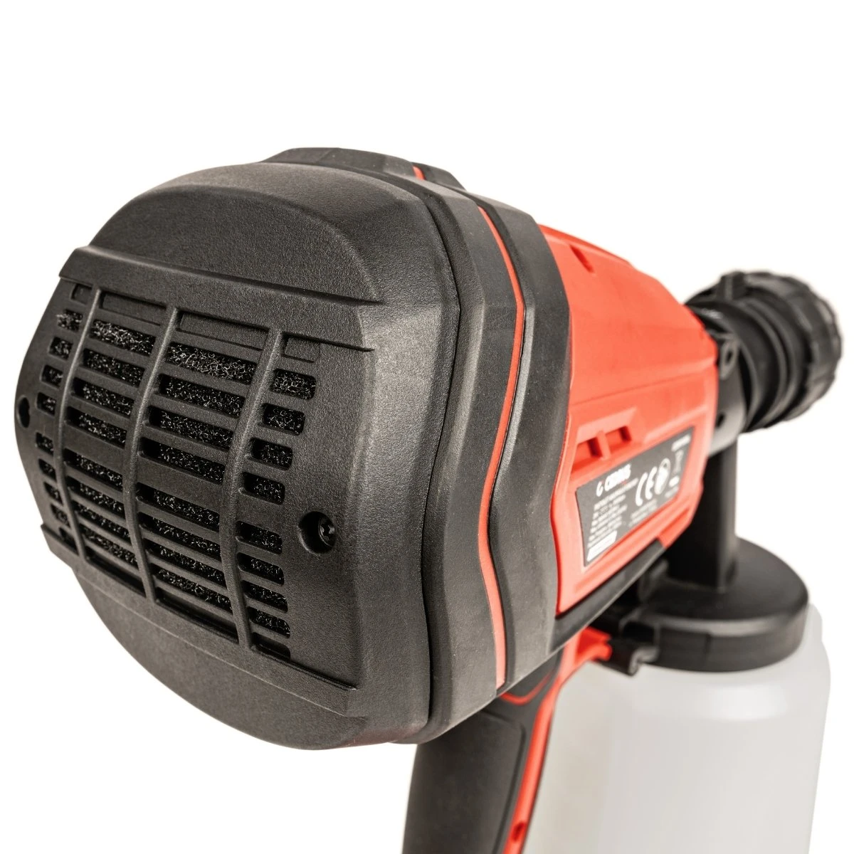 Pistolet wyposażono w półprzezroczysty zbiornik o pojemności 1 litra, który ułatwia kontrolę ilości farby oraz szybkie czyszczenie po zakończonej pracy. W zestawie znajdują się trzy dysze o średnicach 2,5 mm, 1,8 mm oraz 1,5 mm, co pozwala dostosować urządzenie do różnych rodzajów farb, lakierów i impregnatów.