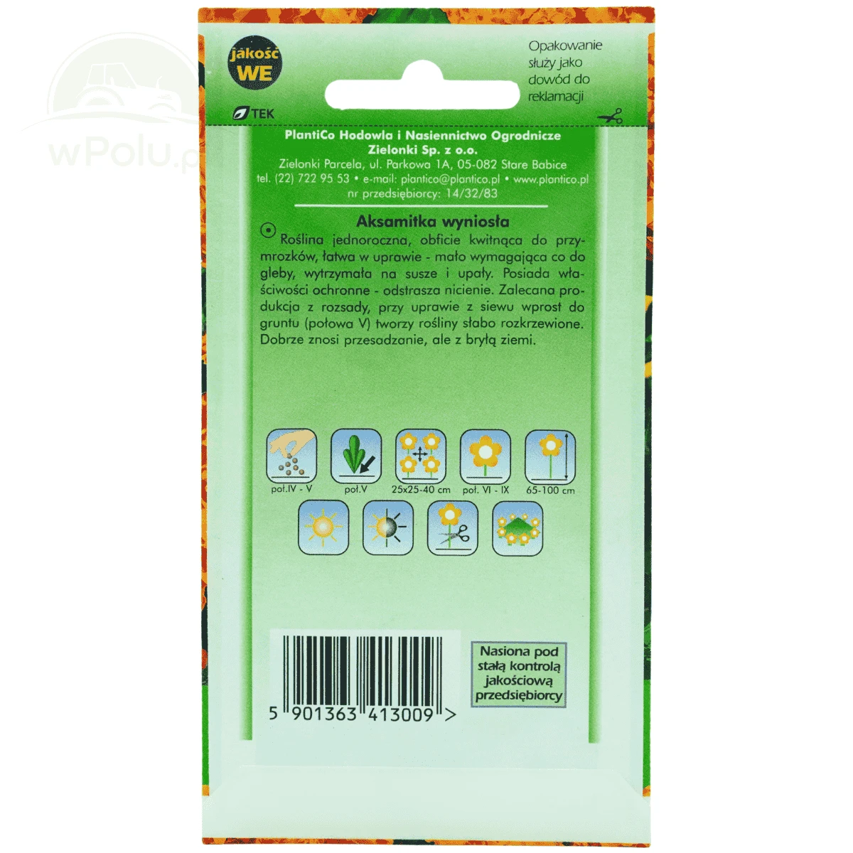 Aksamitka wyniosła to jednoroczna roślina ozdobna o silnym wzroście i bardzo dużych, pełnych koszyczkach kwiatowych, które utrzymują wysoką dekoracyjność aż do pierwszych przymrozków. Rośliny osiągają wysokość około 65–100 cm, tworząc wyprostowane, mocne pędy zakończone intensywnie pomarańczowymi kwiatami. Odmiana ta charakteryzuje się zwartym pokrojem oraz obfitym i długotrwałym kwitnieniem, dzięki czemu doskonale sprawdza się zarówno w ogrodach przydomowych, jak i w nasadzeniach użytkowych.