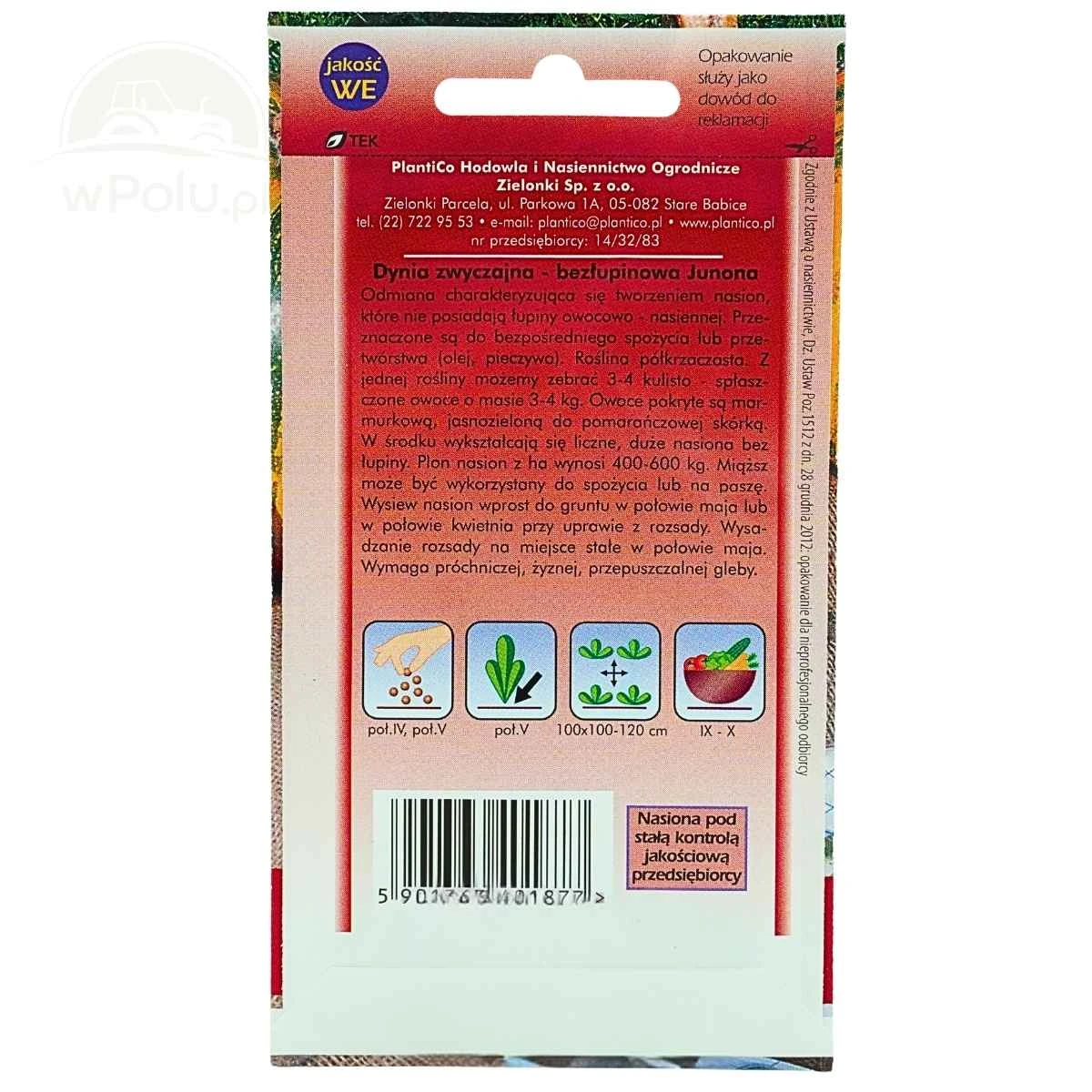 Dynia Junona najlepiej rośnie na stanowiskach słonecznych i osłoniętych od wiatru, w glebie żyznej i stale umiarkowanie wilgotnej. W okresie wegetacji, trwającym około 4–5 miesięcy, roślina zawiązuje zwykle 3–4 owoce. Zalecana rozstawa uprawy to 1 × 1 m, co zapewnia roślinom odpowiednią przestrzeń do wzrostu i równomiernego plonowania. Odmiana polecana jest zarówno do uprawy amatorskiej, jak i użytkowej, szczególnie z myślą o pozyskiwaniu wartościowych pestek bezłupinowych.