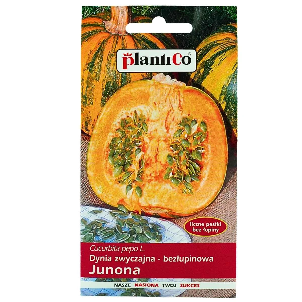 Dynia zwyczajna bezłupinowa Junona to plenna odmiana dyni uprawiana głównie ze względu na liczne, duże nasiona pozbawione łupiny owocowo-nasiennej. Roślina ma półkrzaczasty pokrój i tworzy kulisto-spłaszczone owoce o masie około 3–4 kg. Skórka owoców jest marmurkowa, w barwach od jasnozielonej po pomarańczową. Miąższ nadaje się do bezpośredniego spożycia oraz do przetwórstwa, natomiast nasiona są szczególnie cenione jako surowiec spożywczy i przetwórczy.