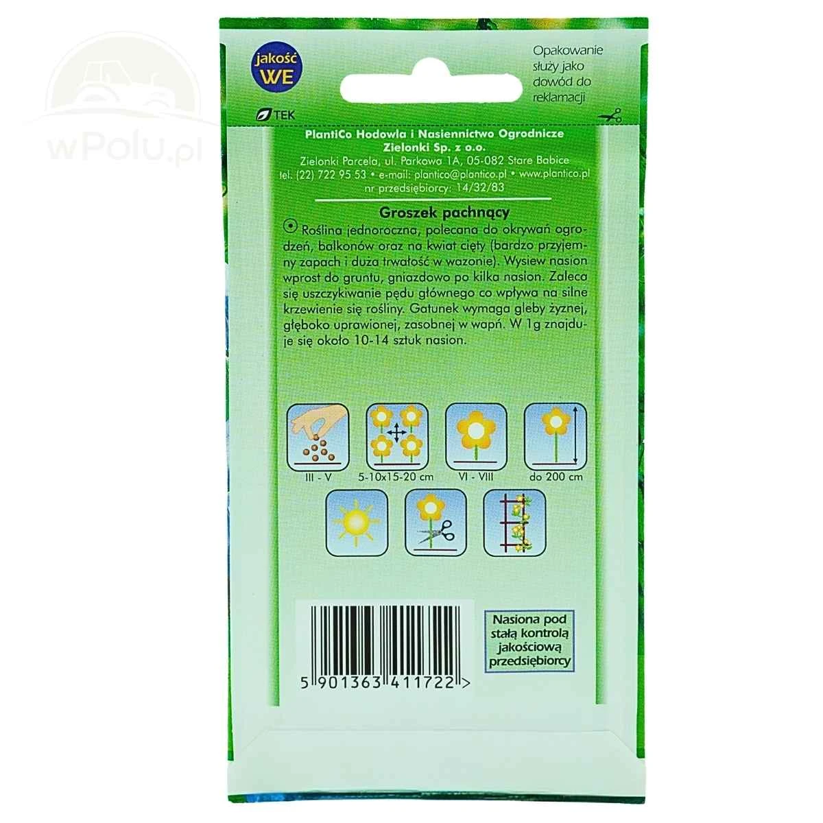 Groszek pachnący to jednoroczna roślina pnąca o szybkim wzroście i bardzo dekoracyjnych, motylkowych kwiatach, ceniona za intensywny zapach oraz długą trwałość kwiatów ciętych. Roślina wytwarza wiotkie pędy osiągające do około 2 m wysokości, które wymagają prowadzenia przy podporach. Delikatne, niebieskie kwiaty osadzone na smukłych pędach, nadają roślinie lekki i elegancki wygląd. Groszek pachnący doskonale sprawdza się zarówno w ogrodach ozdobnych, jak i w uprawie na kwiat cięty.