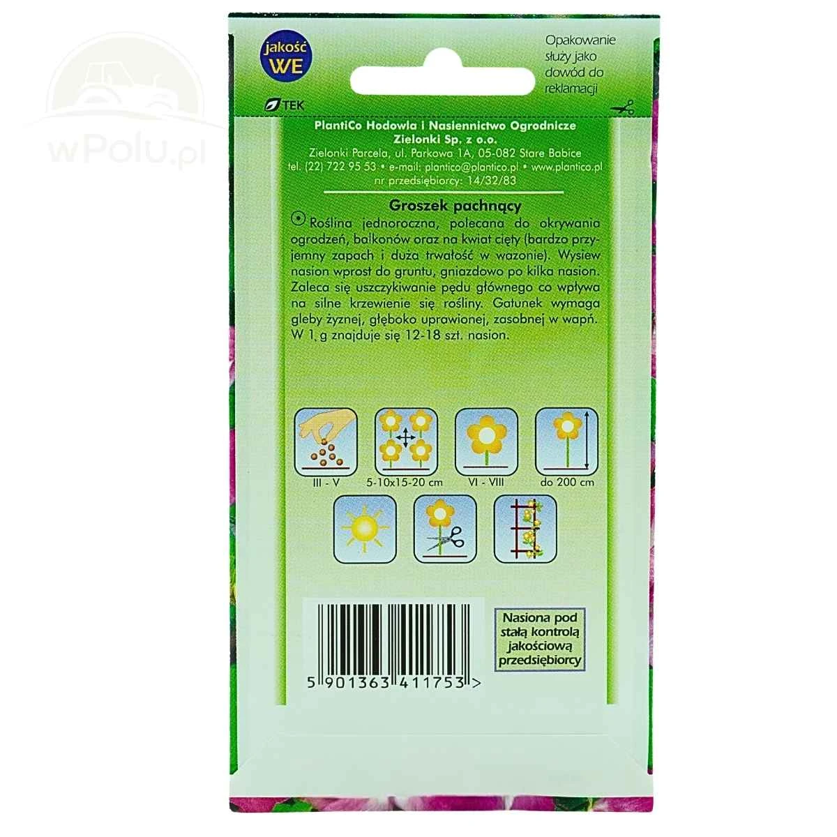 Groszek pachnący jasnoróżowy to jednoroczna, pnąca roślina ozdobna ceniona za delikatne, jasnoróżowe kwiaty oraz intensywny, przyjemny zapach. Odmiana ta charakteryzuje się wiotkimi, długimi pędami wymagającymi prowadzenia przy podporach, kratkach lub ogrodzeniach. Roślina najlepiej rozwija się na stanowiskach ciepłych i słonecznych, w glebie lekkiej, żyznej, dobrze zdrenowanej i średnio wilgotnej, o odczynie zasadowym lub obojętnym (pH 7,0–7,5). Groszek pachnący wyróżnia się wysokimi walorami dekoracyjnymi i nadaje się zarówno do uprawy w gruncie, jak i w pojemnikach.