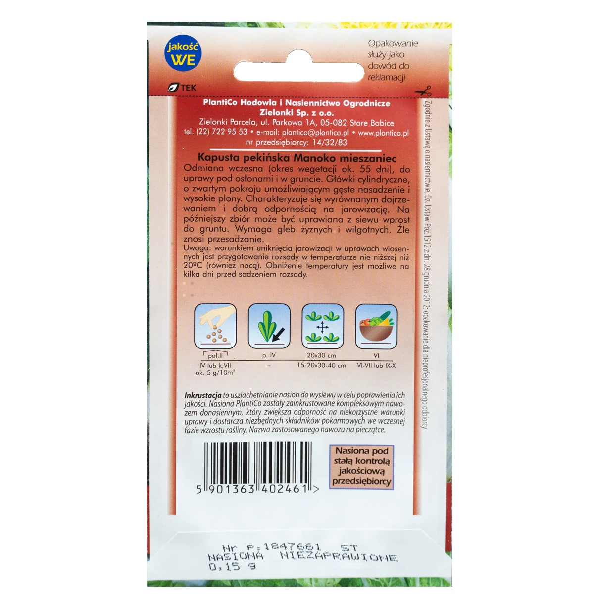 DO RABATU NA WYSYŁKĘ: 1000 złKapusta pekińska Manoko to wczesna odmiana nasion, charakteryzująca się cylindrycznymi główkami, które są wysoko cenione na rynku. Jest to roślina, która nadaje się do uprawy pod osłonami. Główka może ważyć od 0,8 kg do 1,2 kg. Dzięki zwartemu pokrojowy można zagęsić sadzenie i zbierać jeszcze większe plony. Wyróżnia się krótkim okresem wegetacji (ok. 55dni od posadzenia rozsady), wyrównanym dojrzewaniem i dobra odpornością na jarowizację podczas wiosennych upraw.