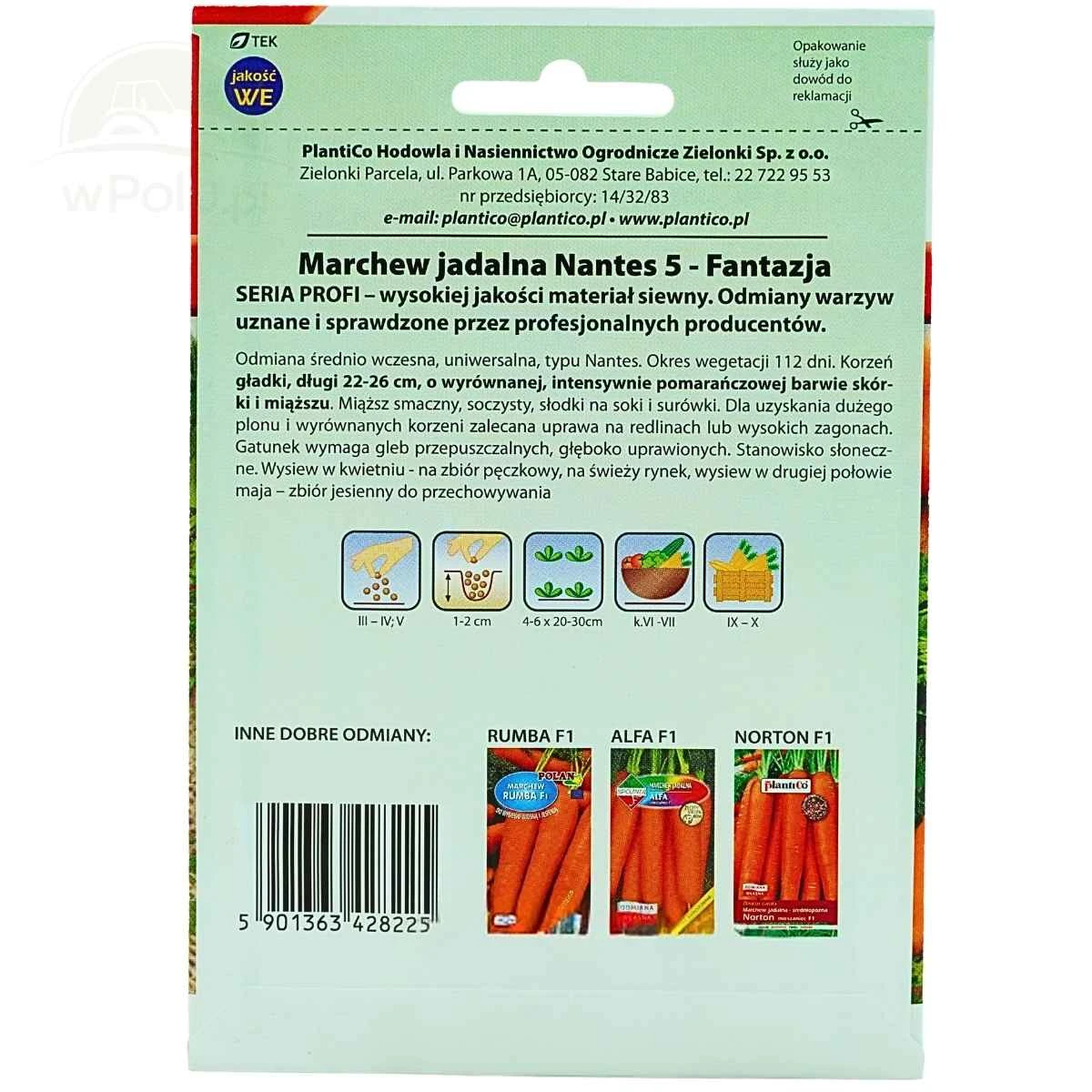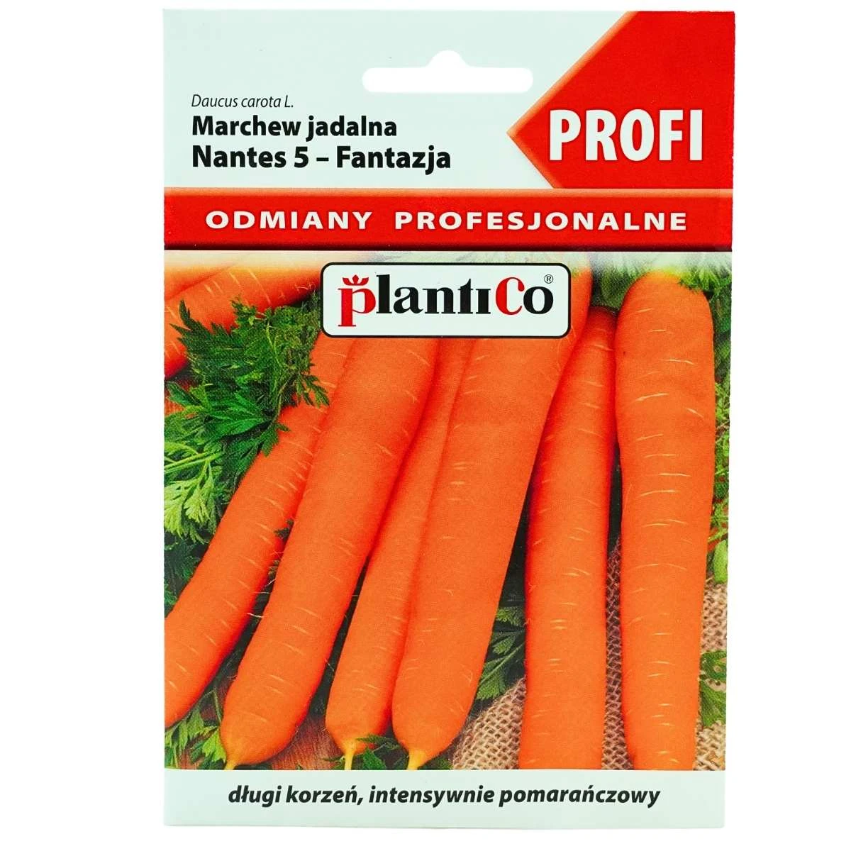 Marchew Nantes 5 Fantazja Profi to średnio wczesna, uniwersalna odmiana marchwi jadalnej, ceniona za wysoką jakość korzeni oraz szerokie możliwości zastosowania kulinarnego. Tworzy długie, gładkie i wyrównane korzenie o intensywnie pomarańczowej barwie i soczystym, słodkim miąższu.
